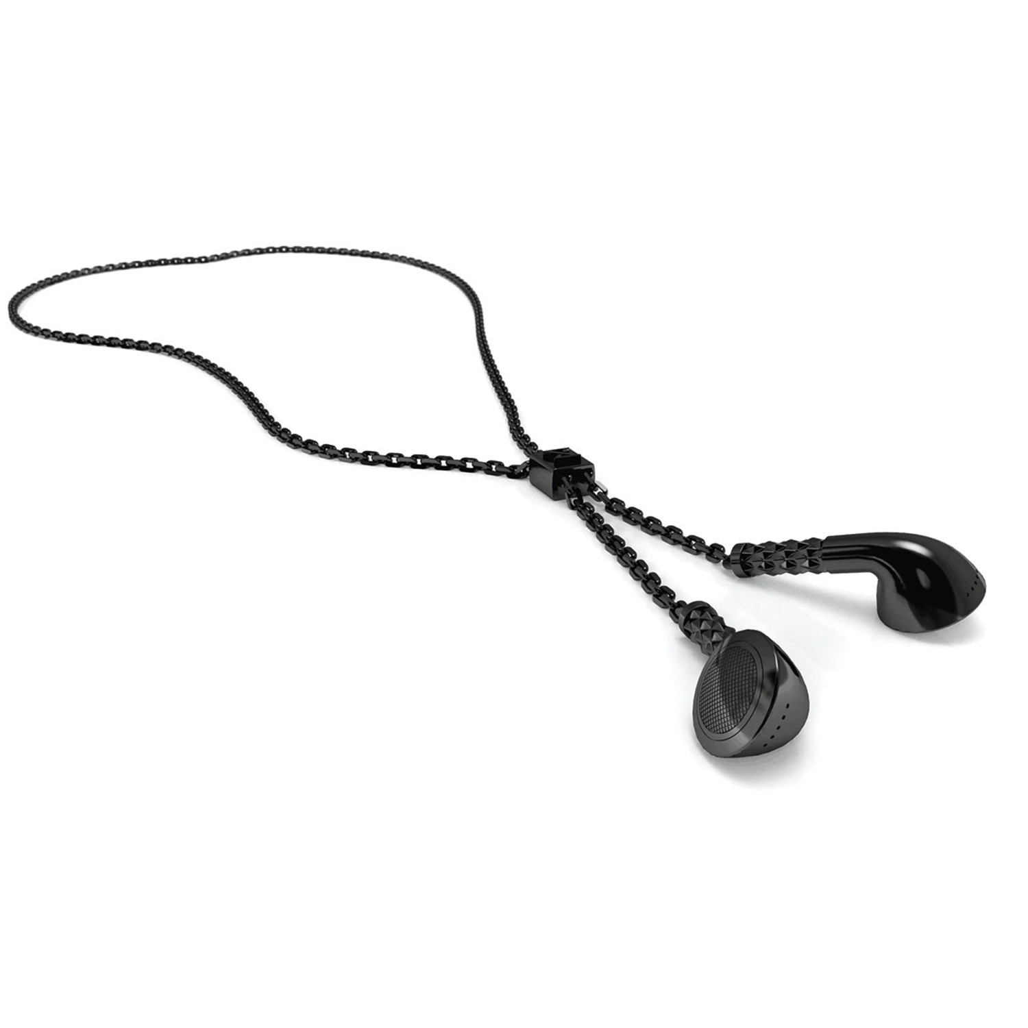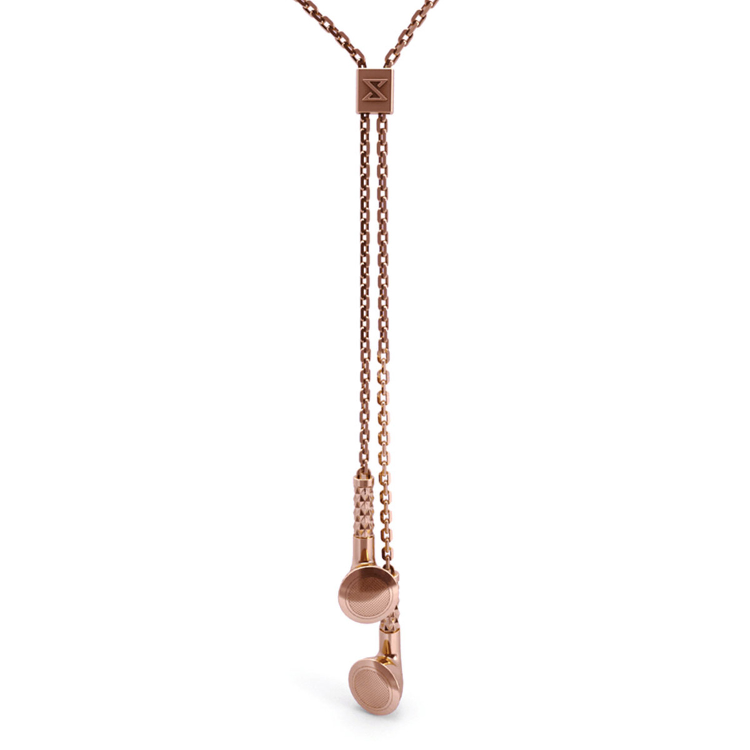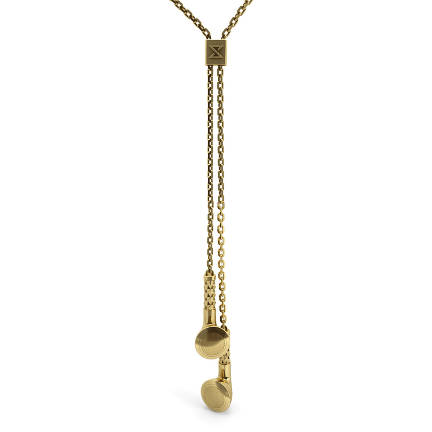 Cast from 35g of solid .925 sterling silver, this subversive, audiophile-inspired Earbud Necklace is handcrafted with the finest detail. The 3mm x 30" sterling silver chain is diamond cut with precision cutting tools to create a pattern of fine, sharp flat cuts across each chain link so that each element of the chain catches light. The necklace features a sliding bolo with a push button to adjust and hold the chain securely in place.