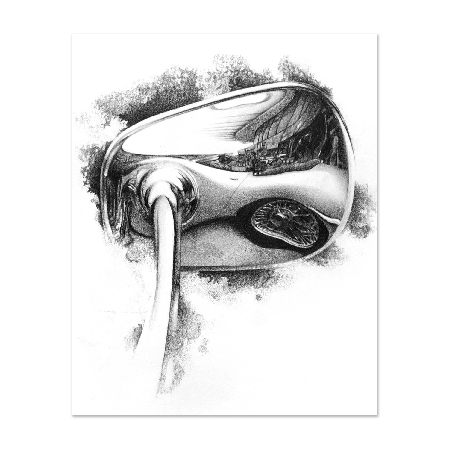 With her photorealistic drawings, Monika Godsmark transforms a simple piece of paper into different materials such as chrome, glass and metal — going from blank canvas to Jaguar Reflections. This high quality print captures and celebrates the minutiae that made you fall in love with classic cars, with artful illustrative details that set it apart.