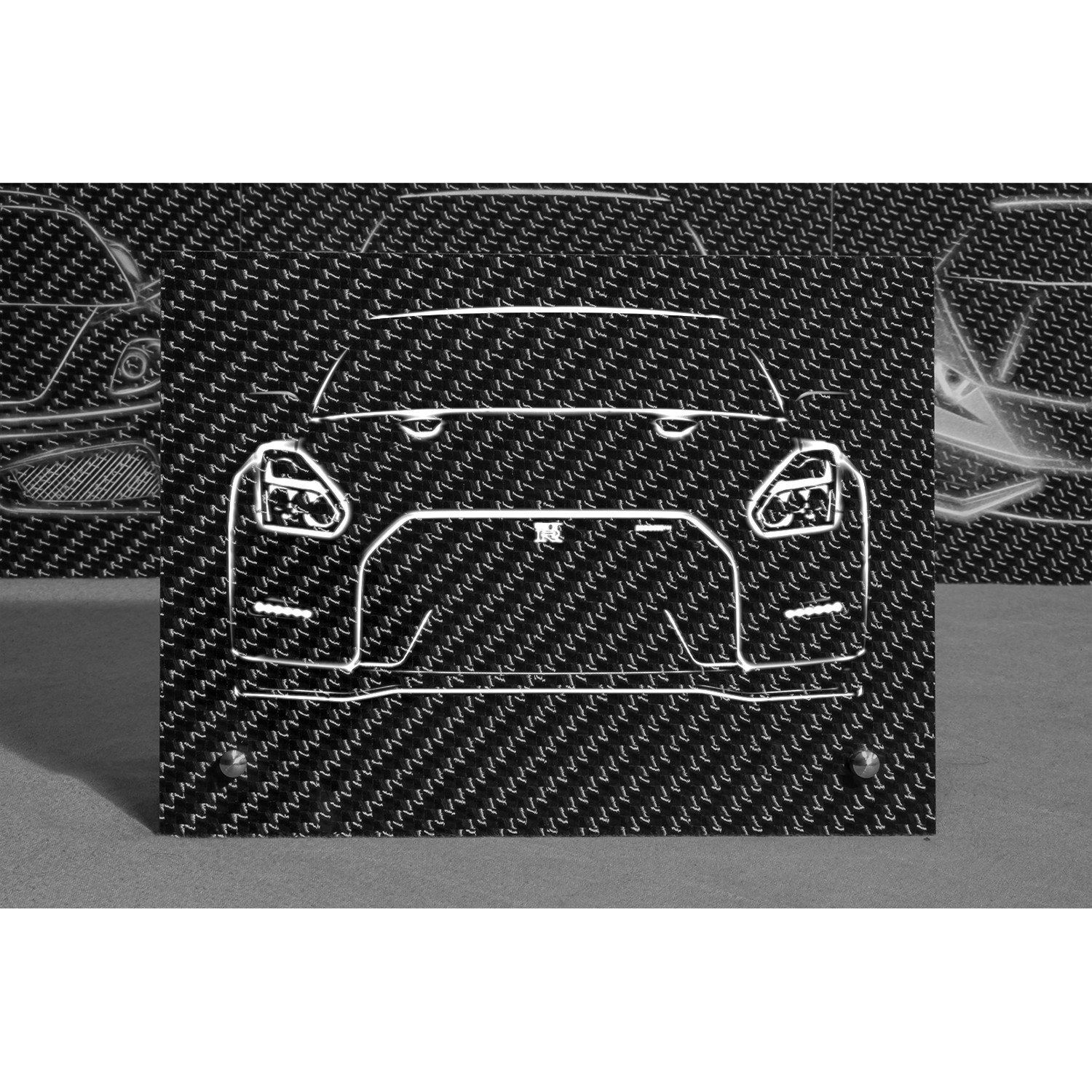Made for the ultimate Nissan GTR fan, the Nissan R35 GTR Carbon Fiber Plate is the perfect gift for yourself or someone who loves carbon fiber. This plate, with its custom 3D effect, is made of pure carbon fiber. It's a perfect decoration for your desk, office, counter, work bench, entry way, or living room. It features a strong, scratch-resistant, high-gloss finish on the front and a textured finish on the back. The plate dramatically changes and appears to "pop off" the plate, depending on your viewing angle. A complete merging of technology and art, it's the auto enthusiast's dream come true.