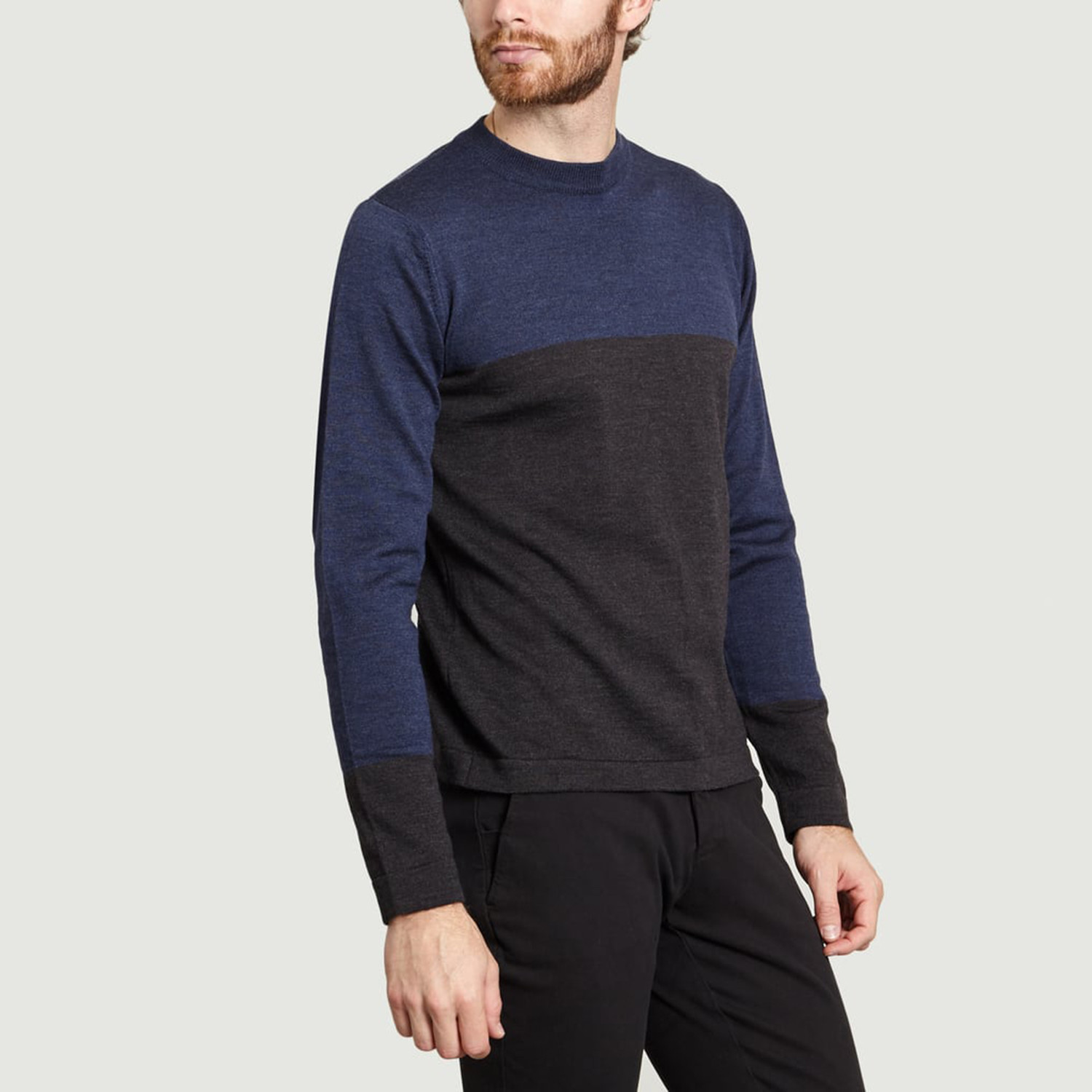 High Collar Knit Sweater // Dark Gray + Blue (L)
