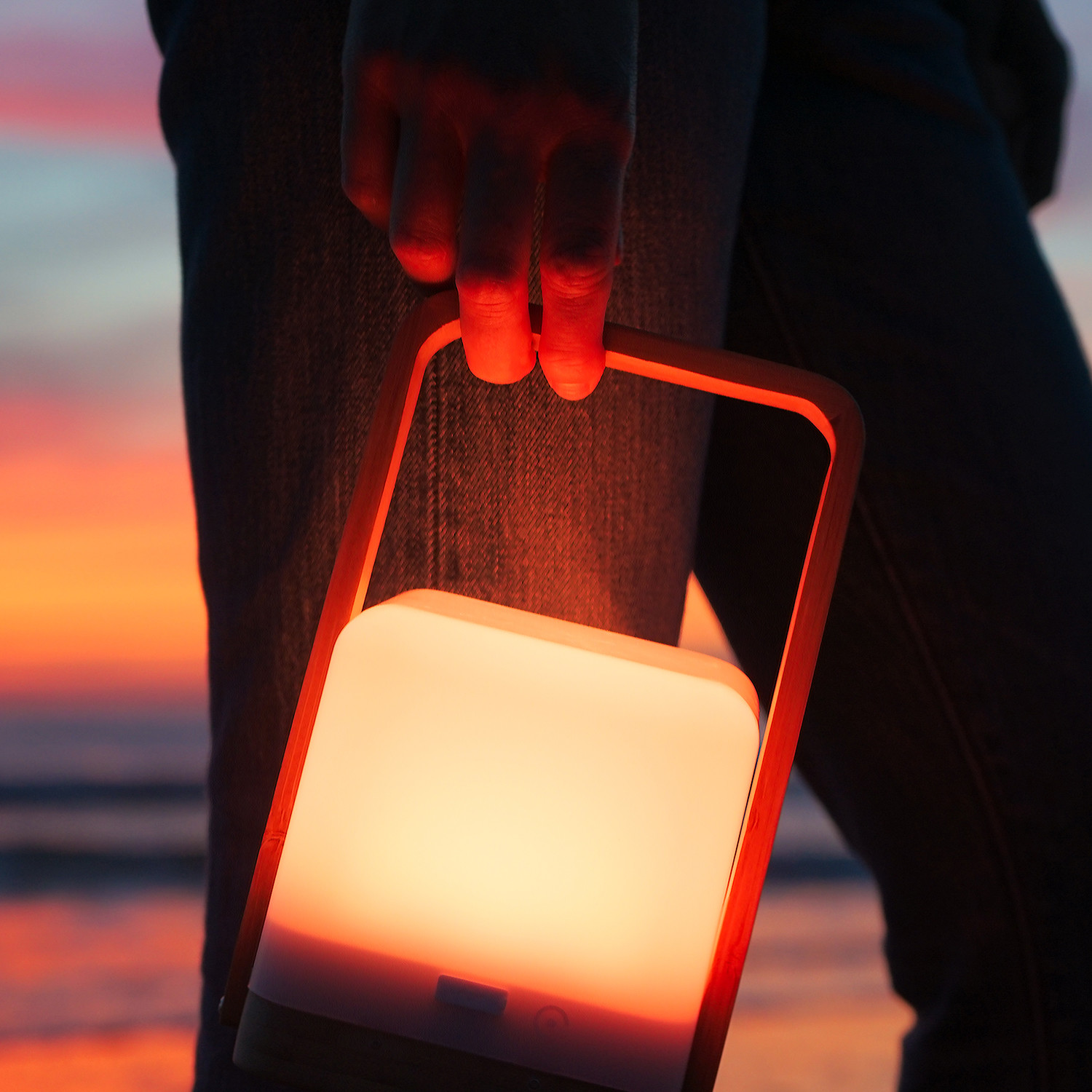 The simple touch sensors make for a sleek, button-less design, that lets you adjust the power and light settings with just a touch or a shake, so you can set the perfect lighting mood anywhere. Lucis is wireless, weather resistant, and water resistant so you can use it even on a windy night out at the beach.