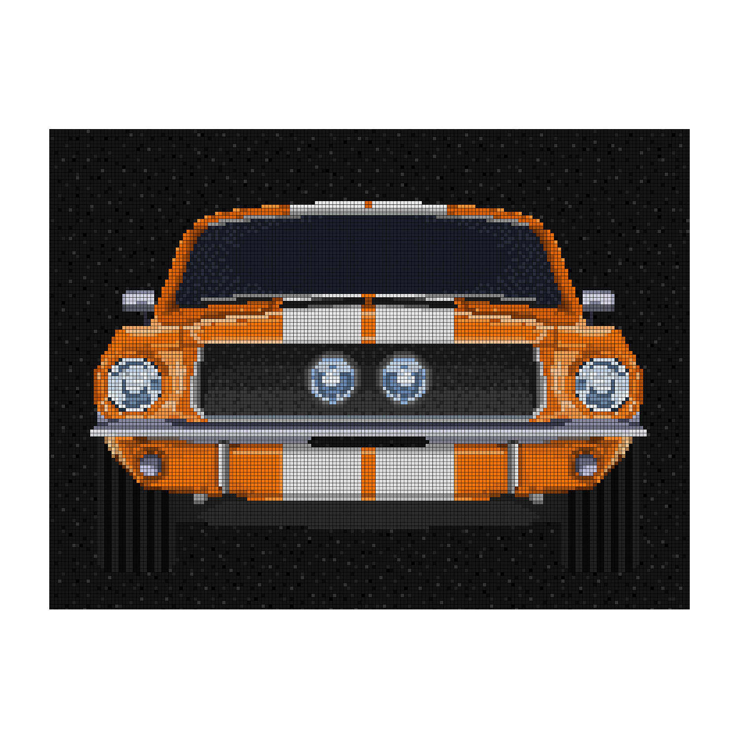 Printed on 200 GSM matte paper, this top quality print from Octavian Mielu showcases the Ford Mustang '67. The unique pixelated mosaic style offers a fresh take on the classic automobile print.
