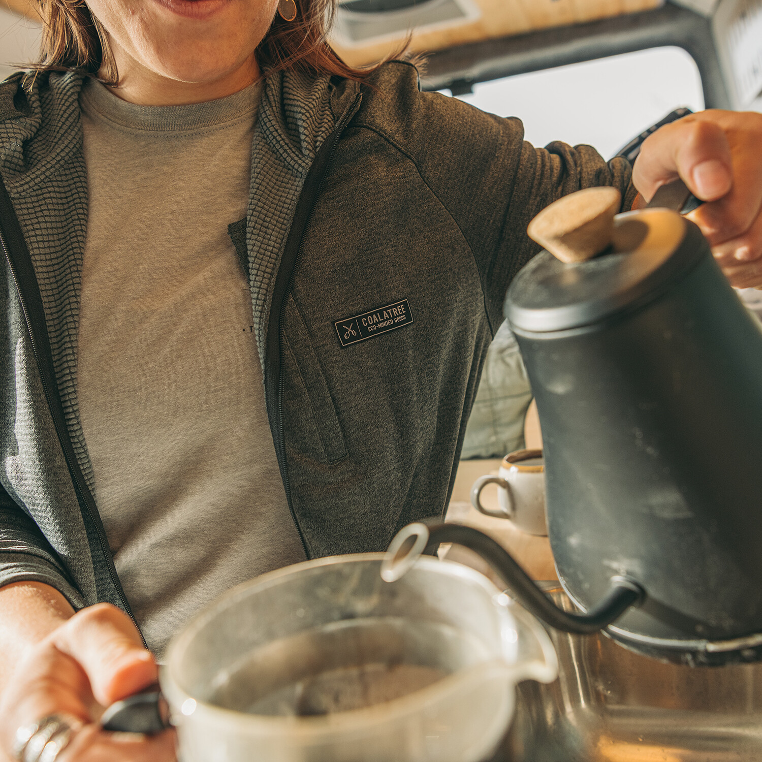 Finally, a full zip layer that is stain resistant and repels water but also is lightweight and breathable enough to be used every day.