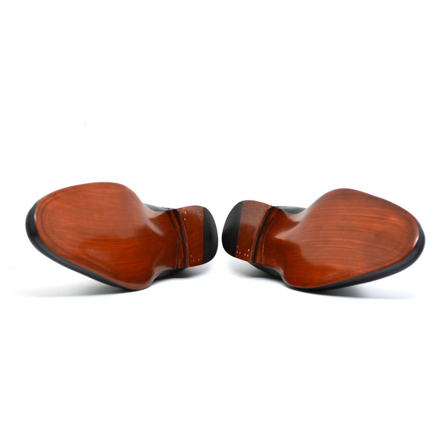 Upper: French Black Pebble Grain Calfskin + Grey Suede Sole: Italian Leather