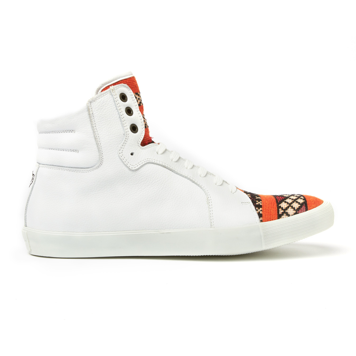 The Samrock in White and Orange is the only sneaker that Cobra Society has put out in 2015 — because it's the only sneaker that you need. With a luxe white leather and a handwoven Moroccan tapestry for some flair, Samrock is your feet's new favorite.