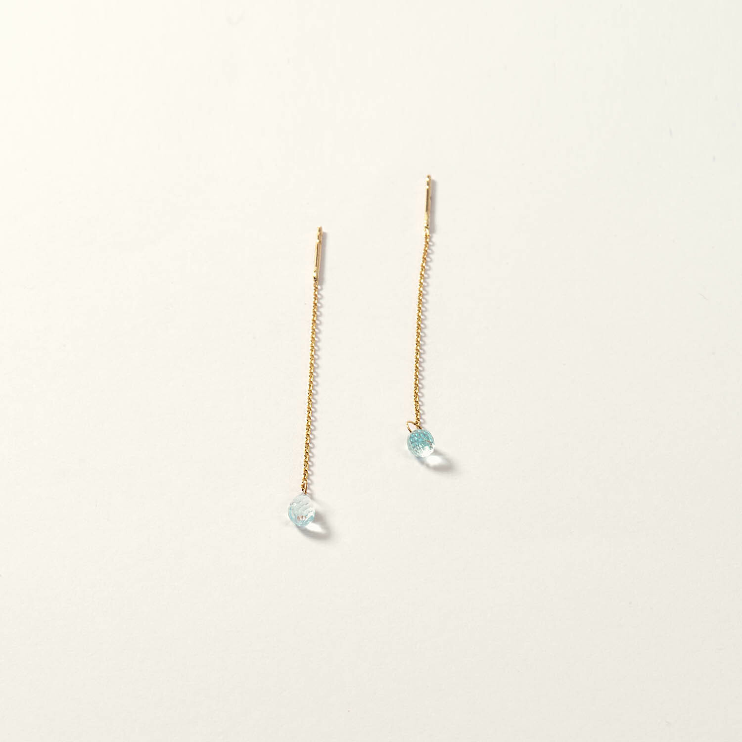 14K Gold Blue Topaz Chain Drop Earring