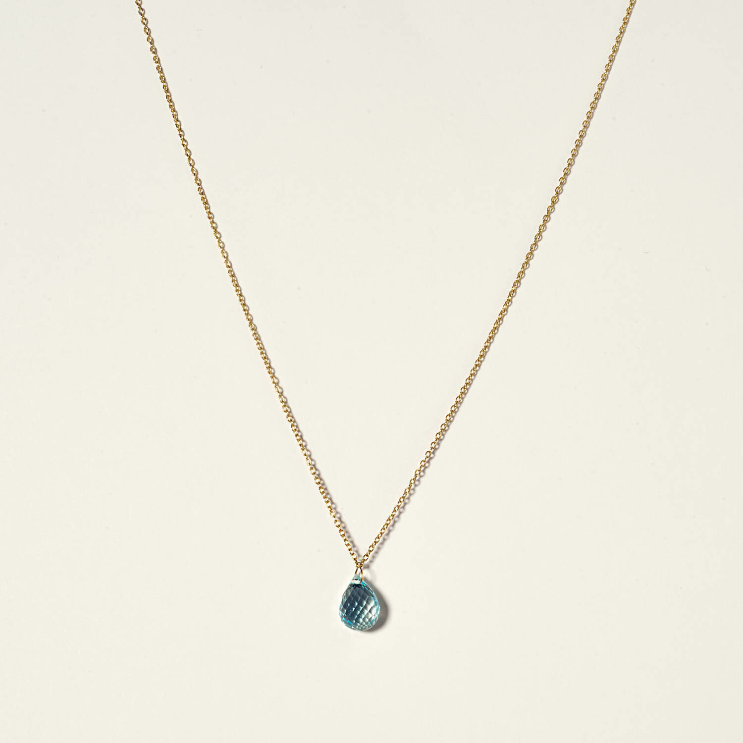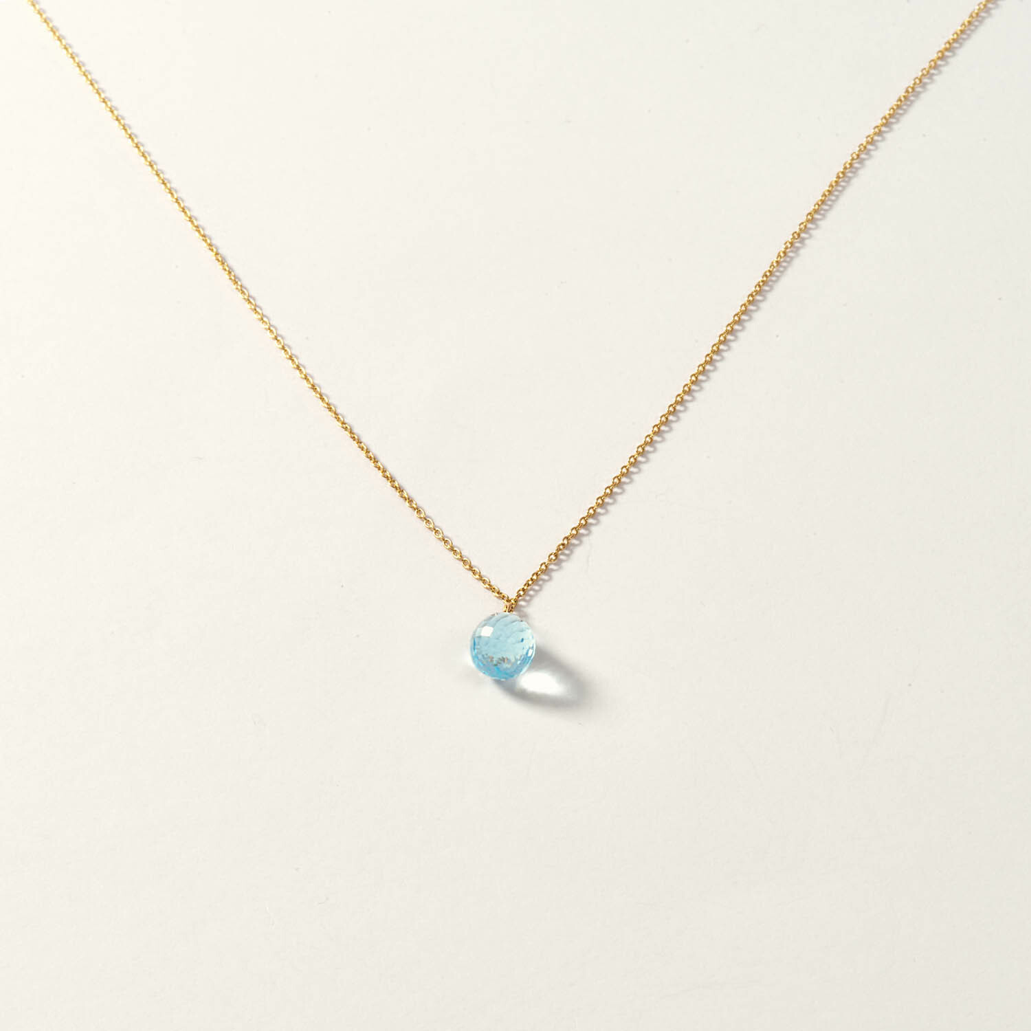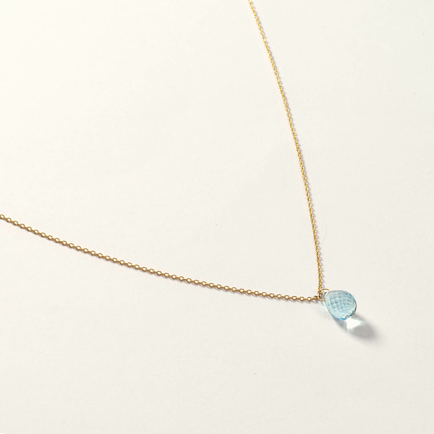 14K Gold Blue Topaz Drop Necklace