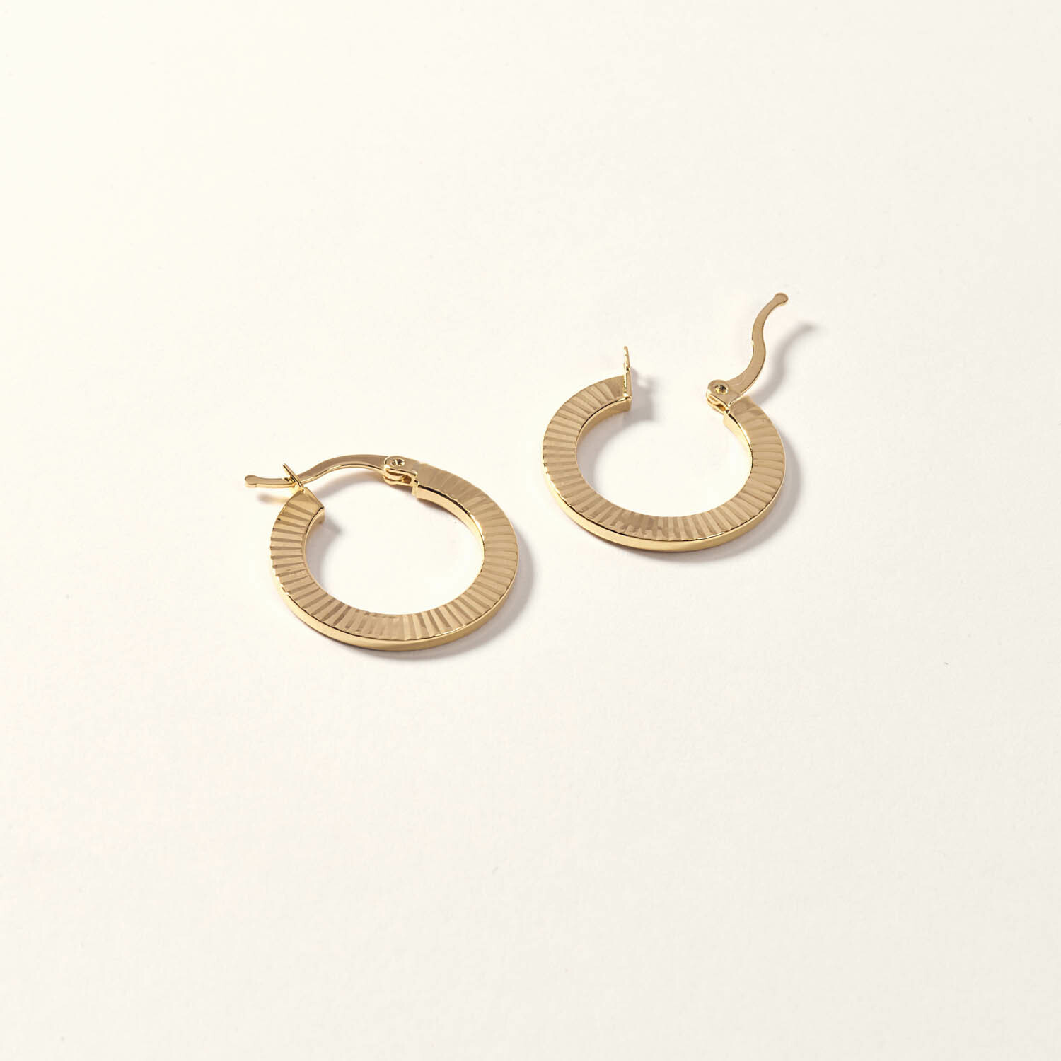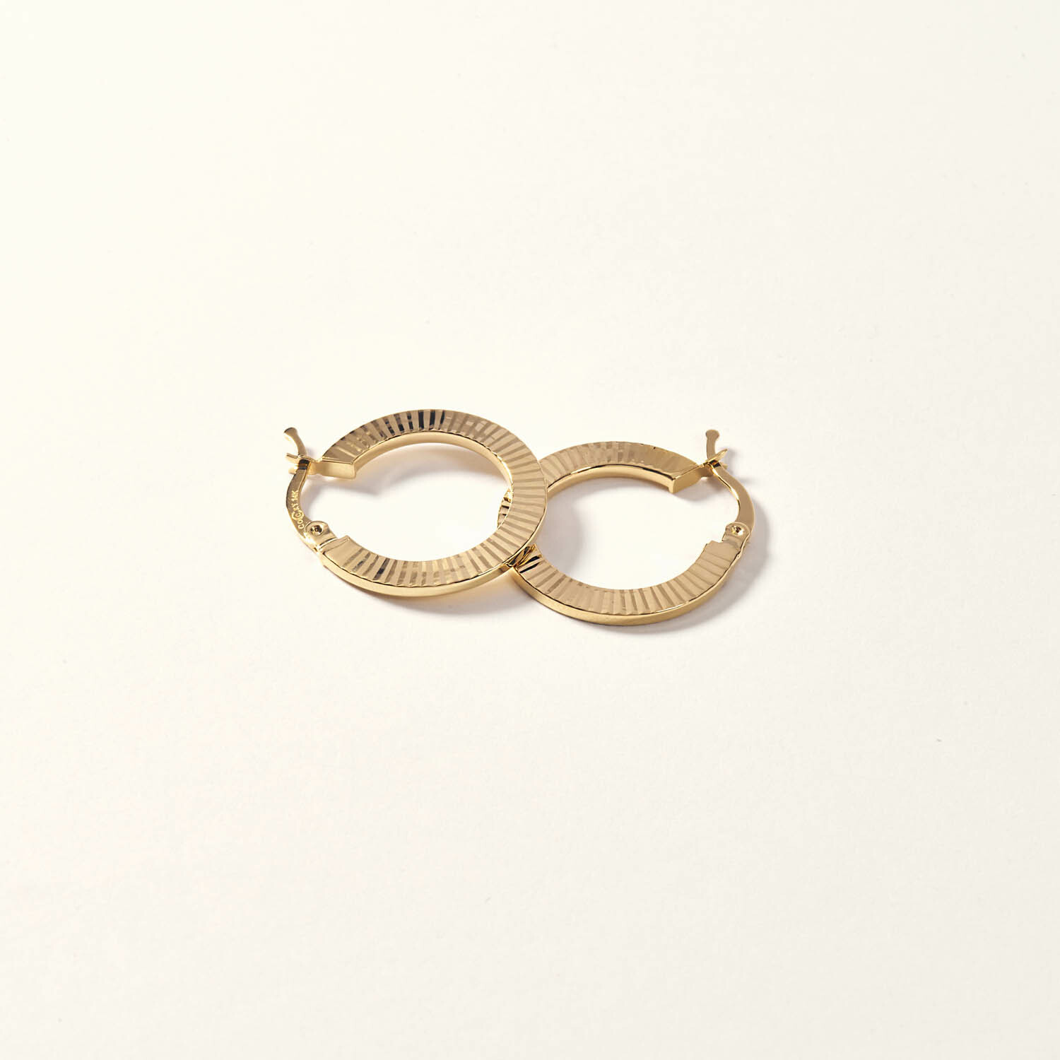 14K Gold Medium Thin Pen Lined Hoop Earring