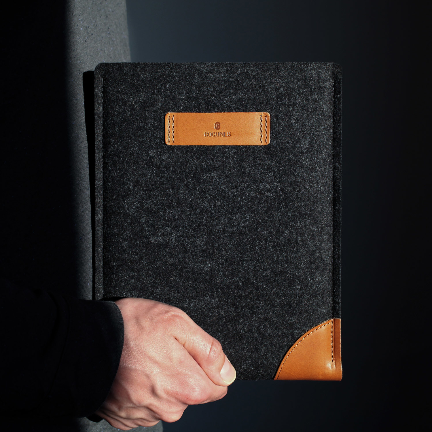 This Classic iPad Sleeve is designed for a fairly snug fit and features a combination of minimalist design and natural materials, with a luxury feel. The sleeve is made from vegetable tanned Italian leather and 100% Merino wool felt, with a rich, dense texture. It sports a leather patch embossed with the Cocones logo and leather patches in the bottom corners for reinforcement.