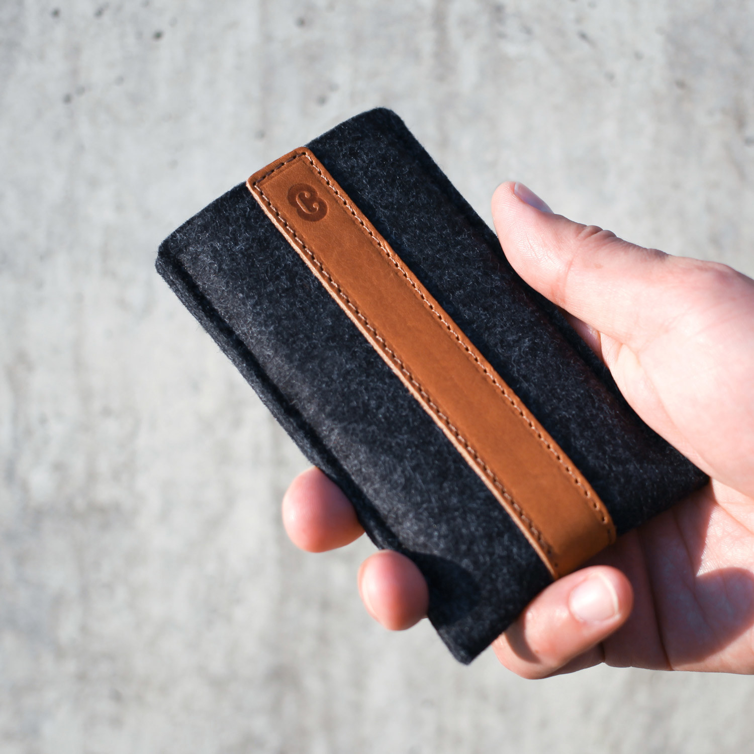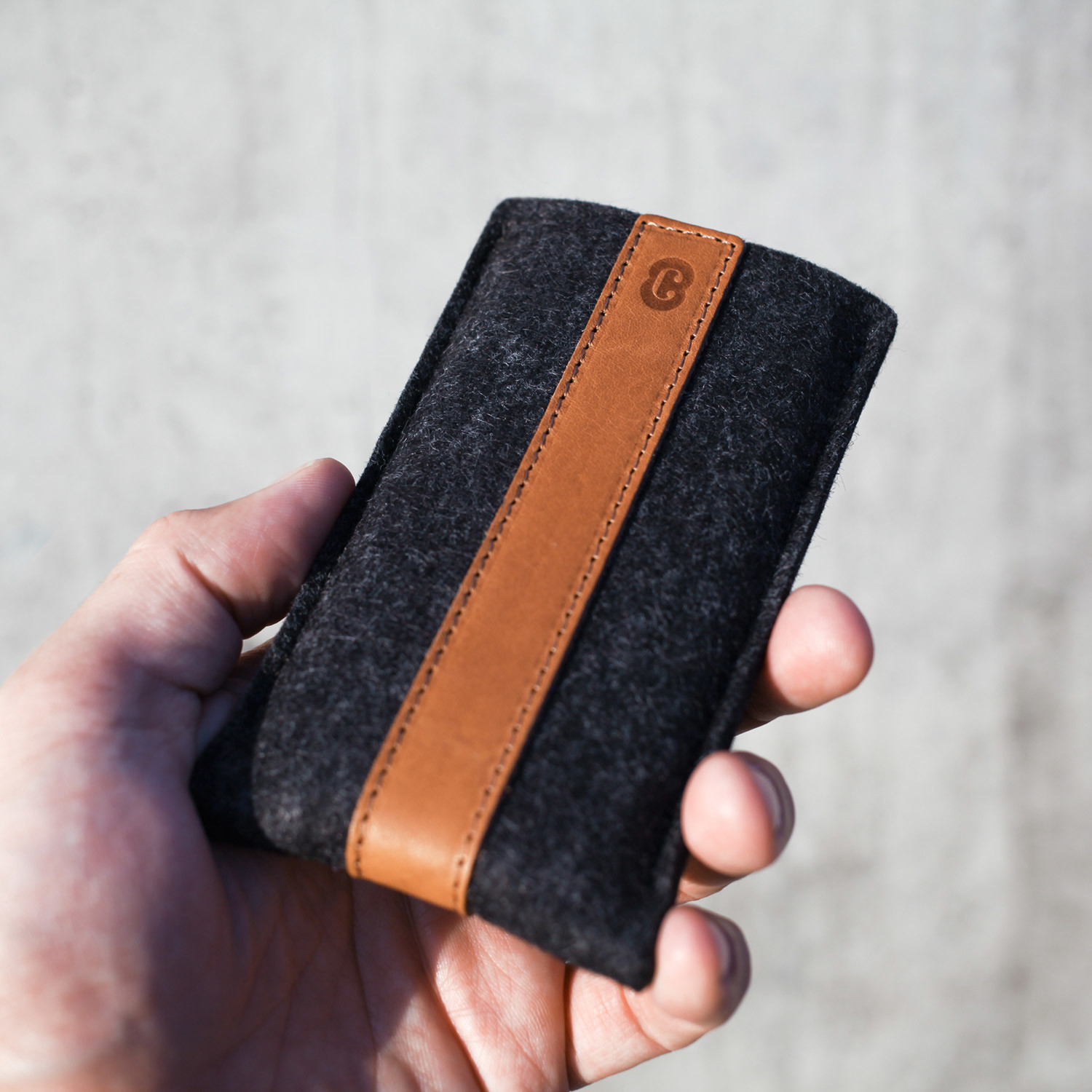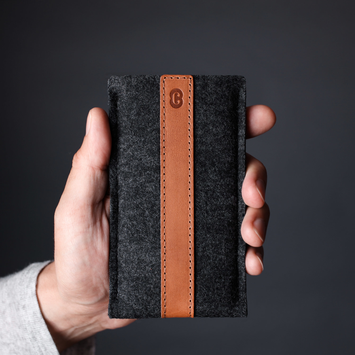 This Classic iPhone Sleeve features a combination of minimalist design and natural materials, with a luxury feel. It sports a leather strap embossed with Cocones logo and is made from vegetable tanned Italian leather and top-quality 100% Merino wool felt, with a rich, dense texture.