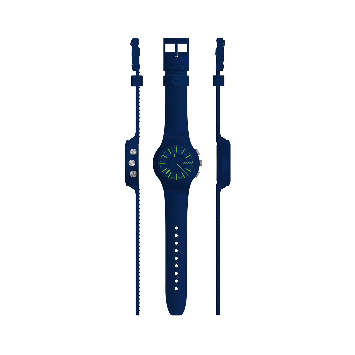 The Blue Electric Cogito Pop Watch is a must have fashion accessory with a connected twist. With the use of the free ConnectedWatch app, you'll be able to get smart device notifications right onto your wrist! At a glance, it allows you to view incoming and missed call alerts, email alerts, 3rd party messenger app alerts, calendar reminders and low battery alerts.