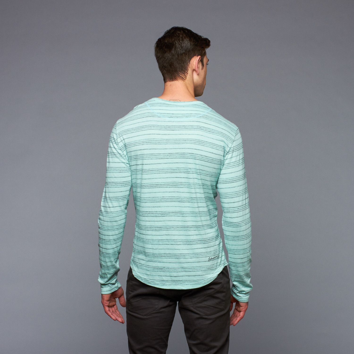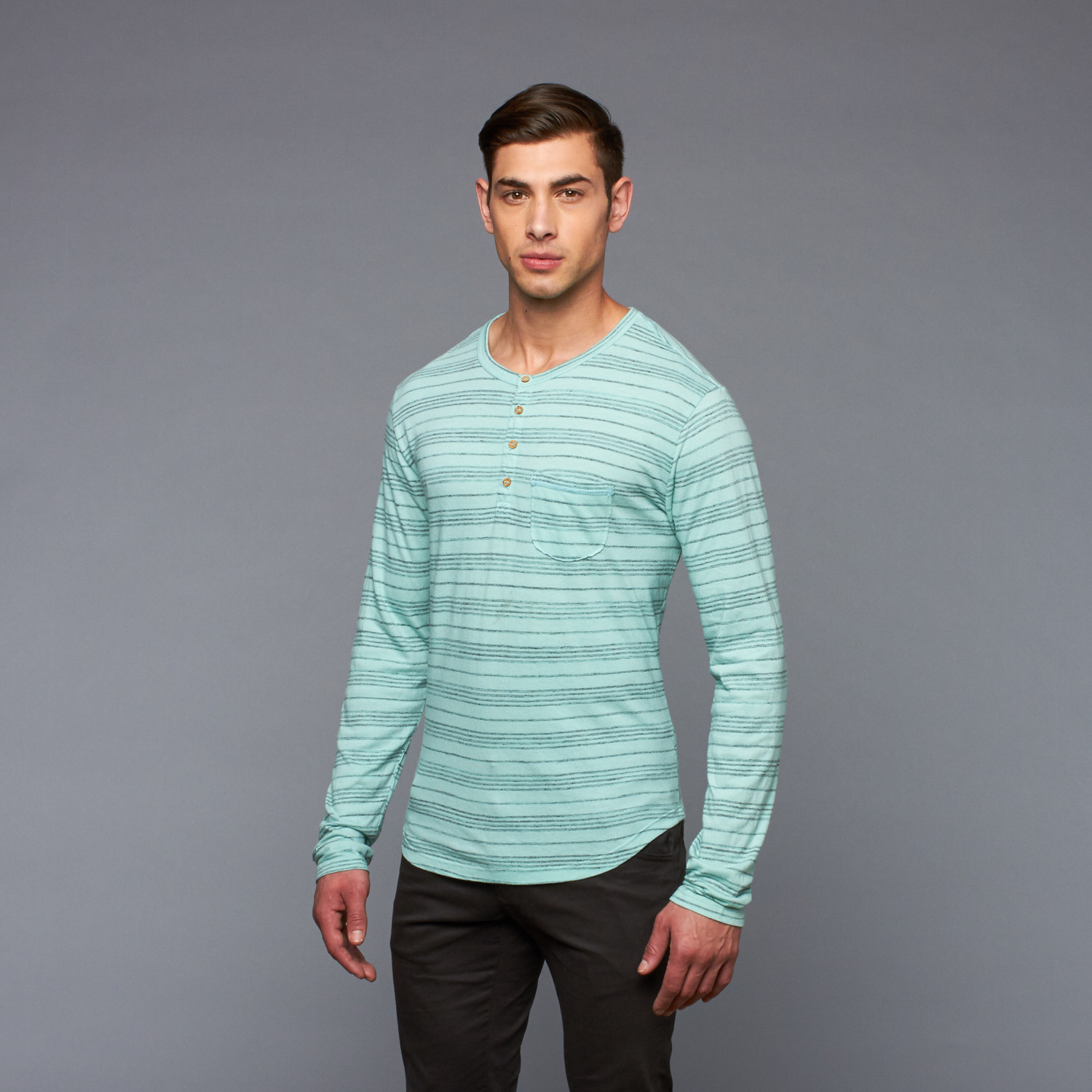 The Striped Henley will treat you well, well into the warmer months. This mint-colored shirt boasts wooden buttons and a low-cut mini chest pocket to keep you looking supremely fresh.