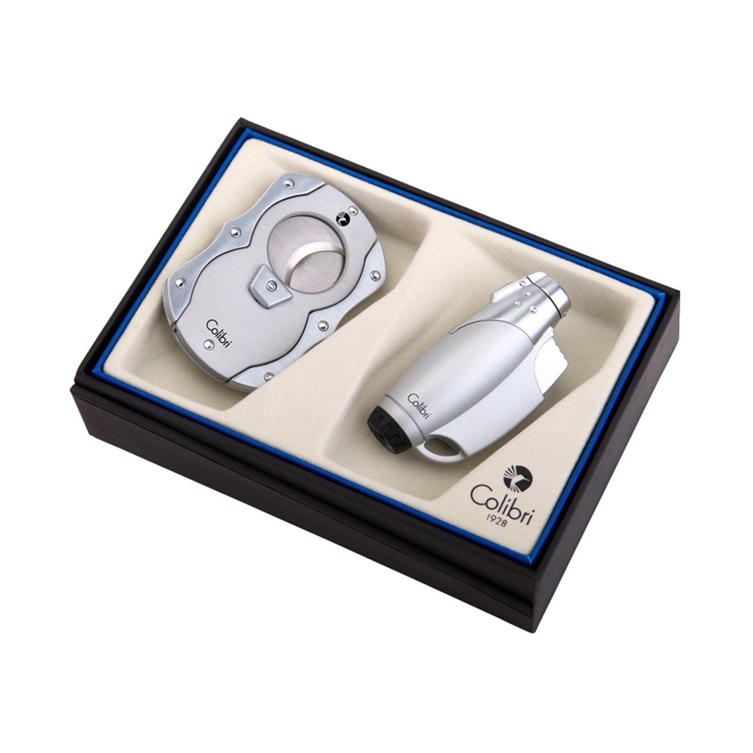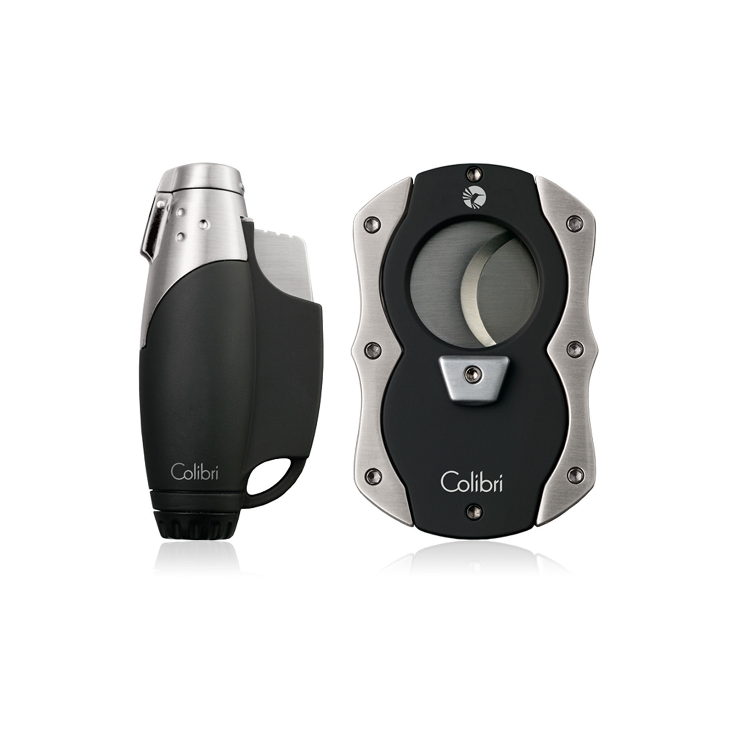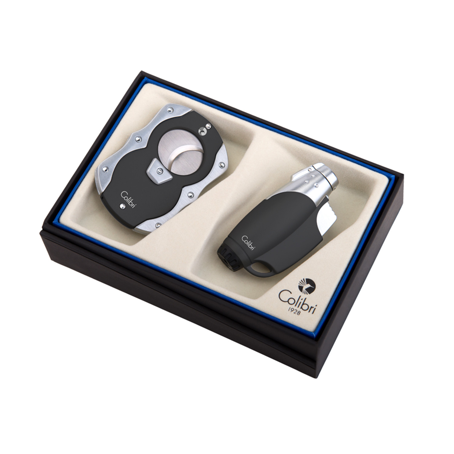 Also included is the Colibri Black Rubber Cut Cigar Cutter. This double guillotine cigar cutter has 440 stainless steel blades, a 62 ring gauge aperture for large cigars, spring-loaded release, ergonomic handles for a sure grip and a durable rubberized finish. The blades are vibrantly color-coated with a non-stick, easy-to-clean lacquer.