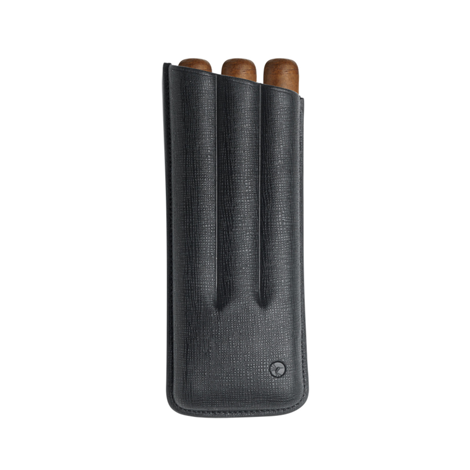 — Colibri Three Finger Corona Black Saffiano Leather Cigar Case w Black Stitch