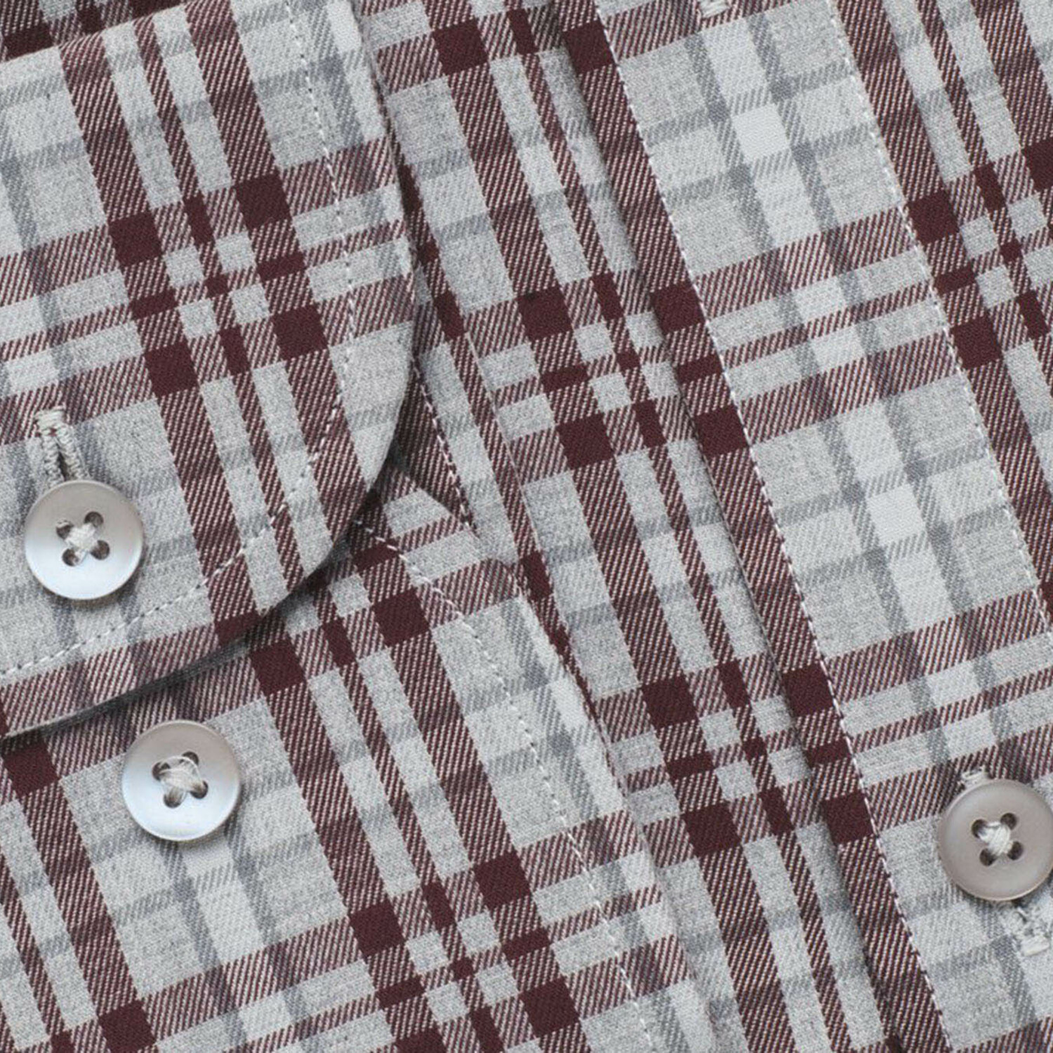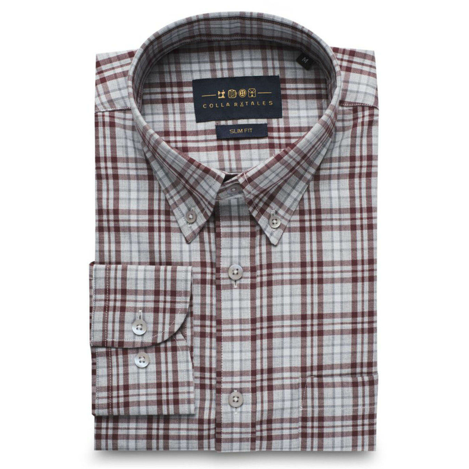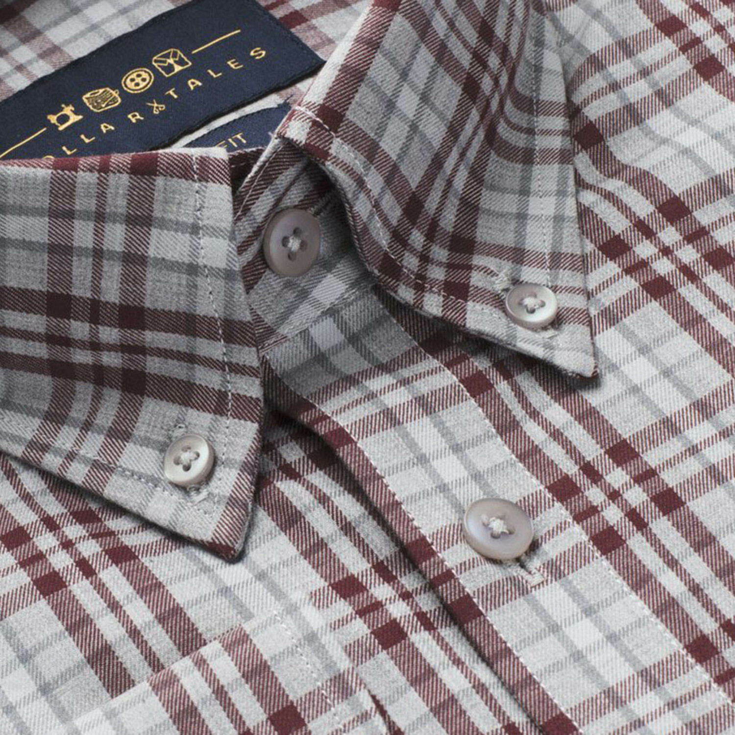 Checkered Pocket Button-Up Shirt // Light Gray + Maroon