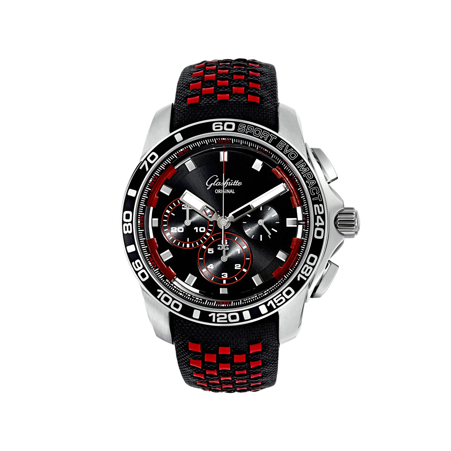 Glashütte Original has been around for near two centuries, all the while crafting high-quality timepieces with expert German engineering. This Glashütte Original Sport Evolution Impact Chronograph Automatic is a sporting style that pays tribute to the fast paced world of racing with every streamlined detail.