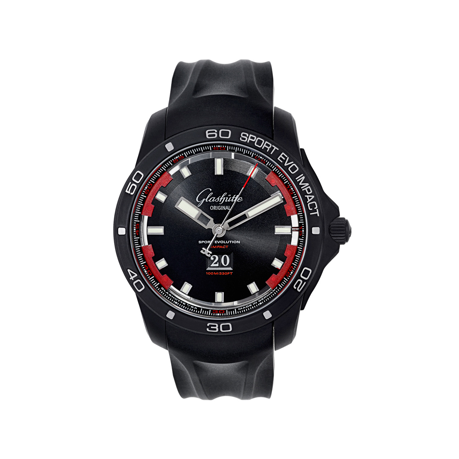 Glashütte Original has been around for near two centuries, all the while crafting high-quality timepieces with expert German engineering. This Glashütte Original Sport Evolution Impact Panorama Date Automatic is a sporting style that pays tribute to the fast paced world of racing with every streamlined detail.