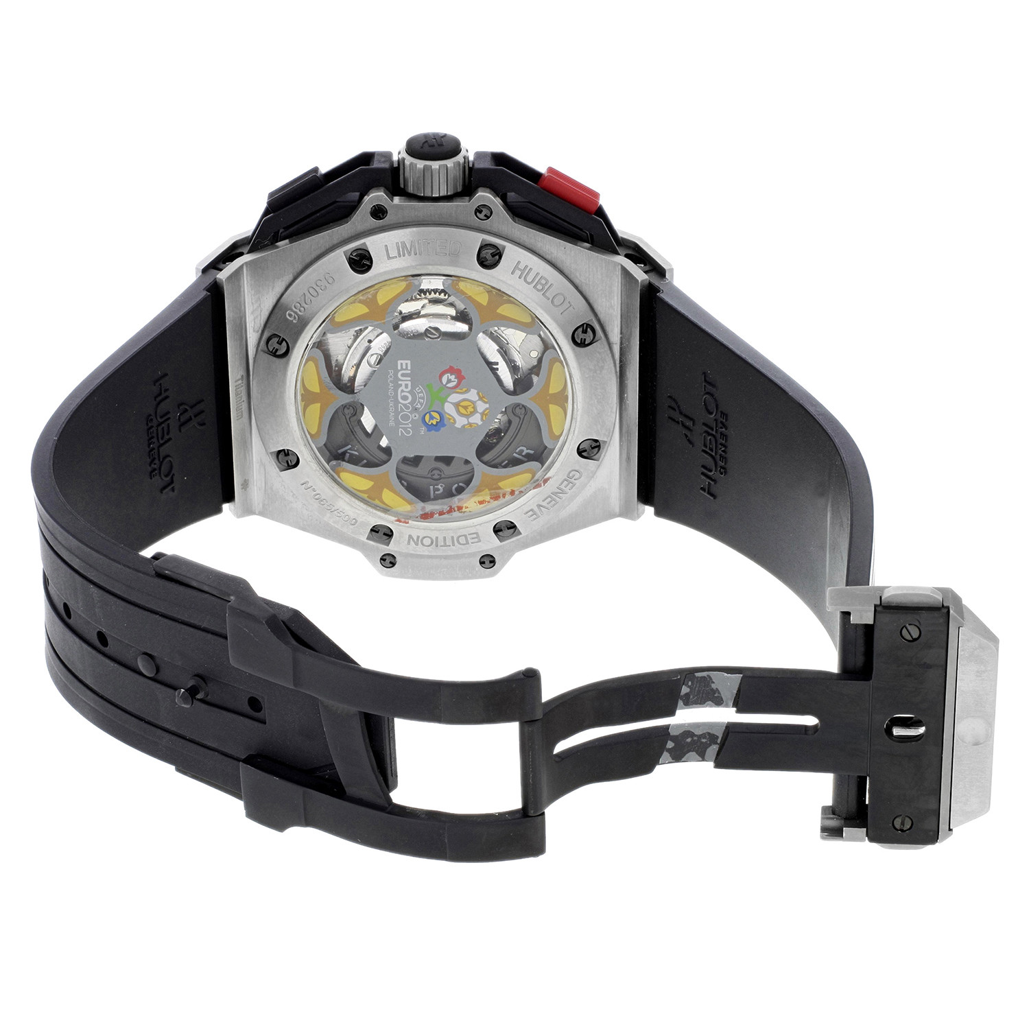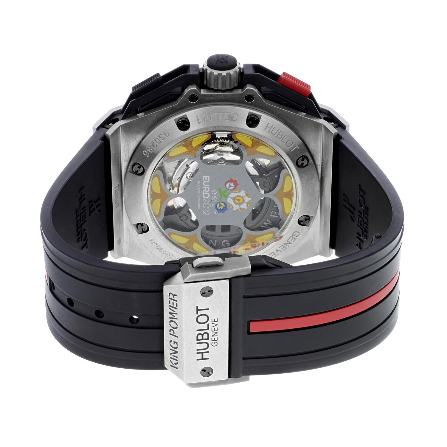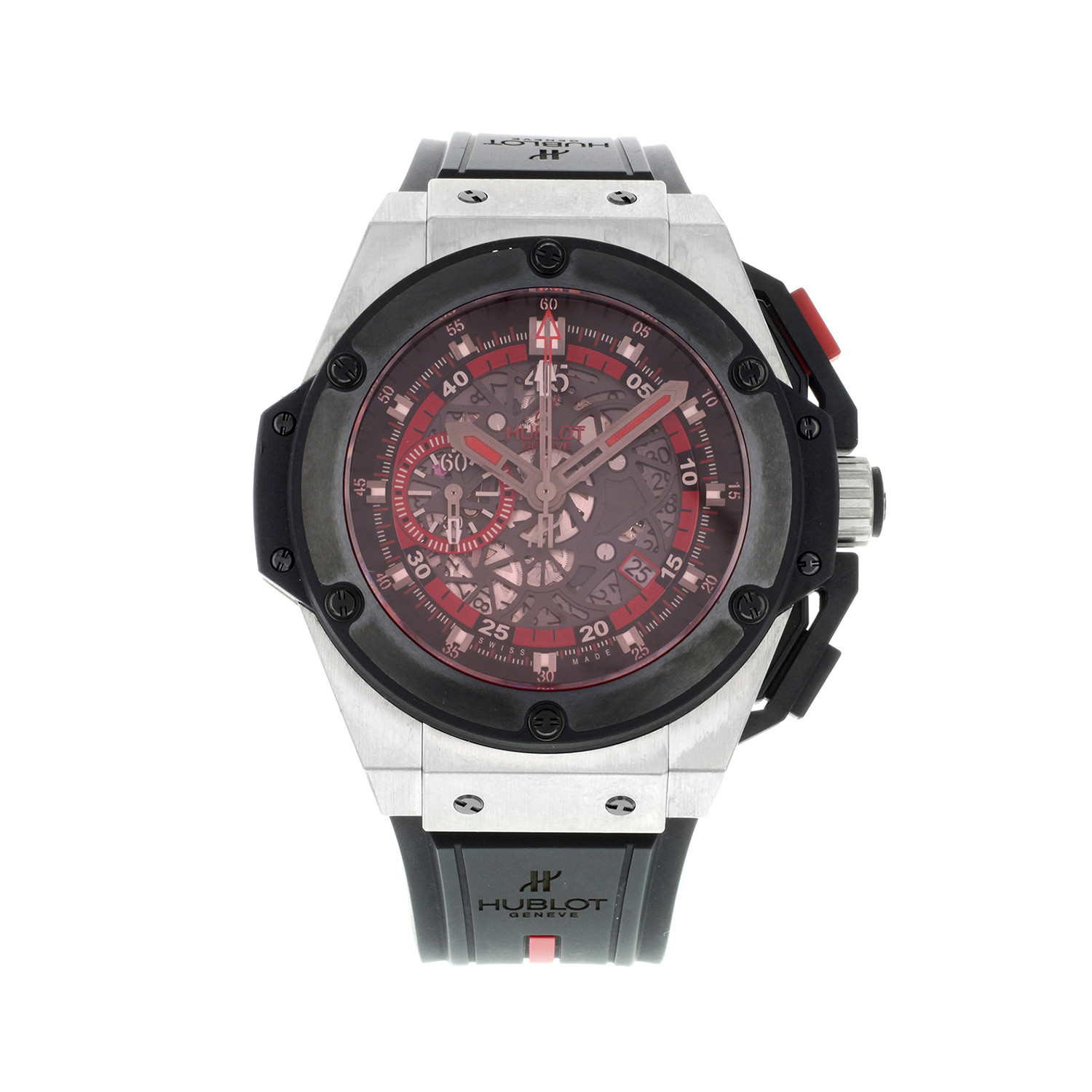 First presented during Baselworld 2005, the world-famous international watch and jewelry show, the Big Bang chronograph is a perfect illustration of the concept of fusion. An instant success, orders at Hublot tripled in the year after the Big Bang's release. Some months later, the Big Bang won the prize for Best Design at the renowned Grand Prix d'Horologerie de Genéve. Since then, Hublot has seen explosive growth, piling up awards, successes, and — of course — orders. In black and red, the Hublot Big Bang King Power Automatic is the best of the bunch.