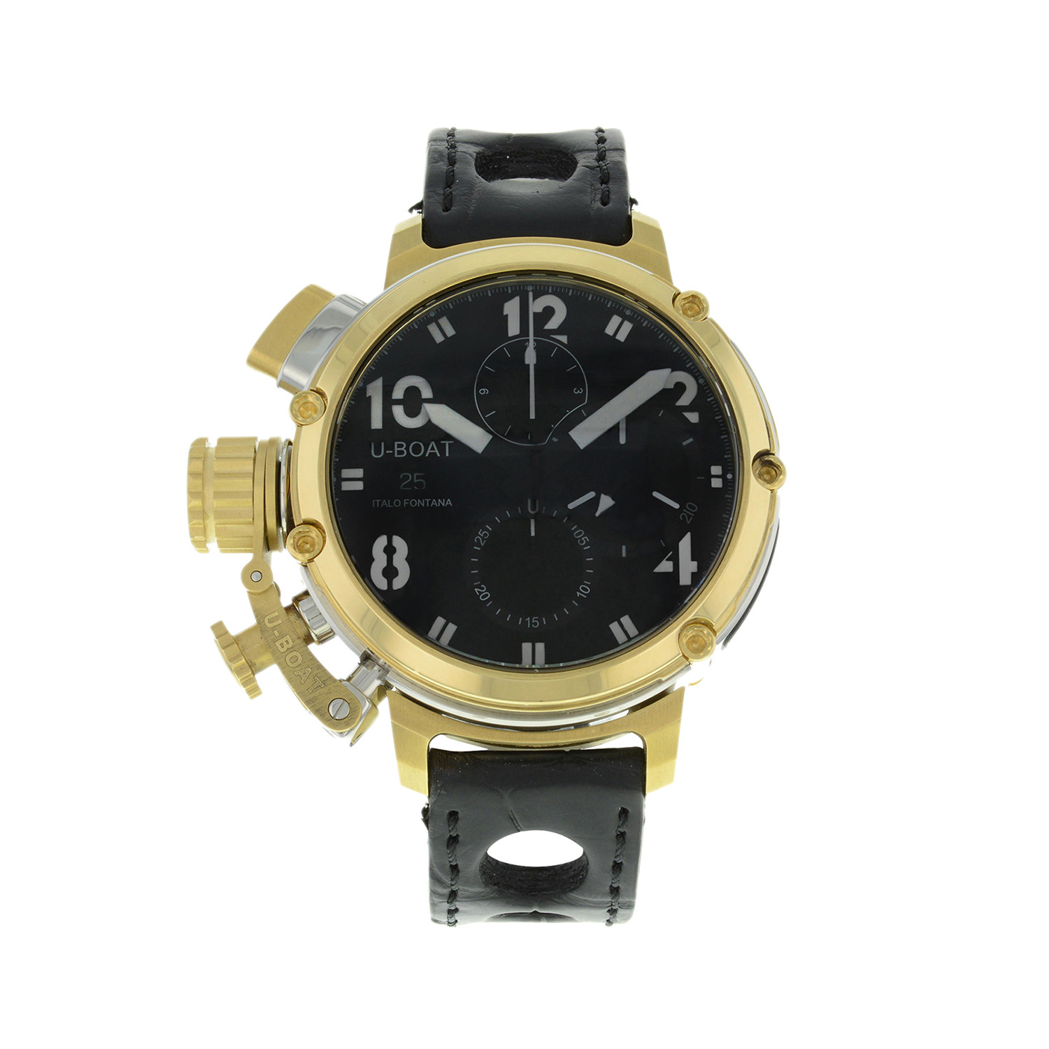 In Greek mythology, a Chimera is a beast with multiple parts; a hybrid creation, if you will. This U-Boat watch may not have horns, but it does combine unusual functions in creative ways. Two superimposed dials make the face multifunctional, while the bezel and the back of the case are locked together by external tubing and a customized key that ensures absolute water resistance. An oversized cup crown for an easy manipulation, secured on the carrure and positioned at 9 o’clock, completes this incredible piece.