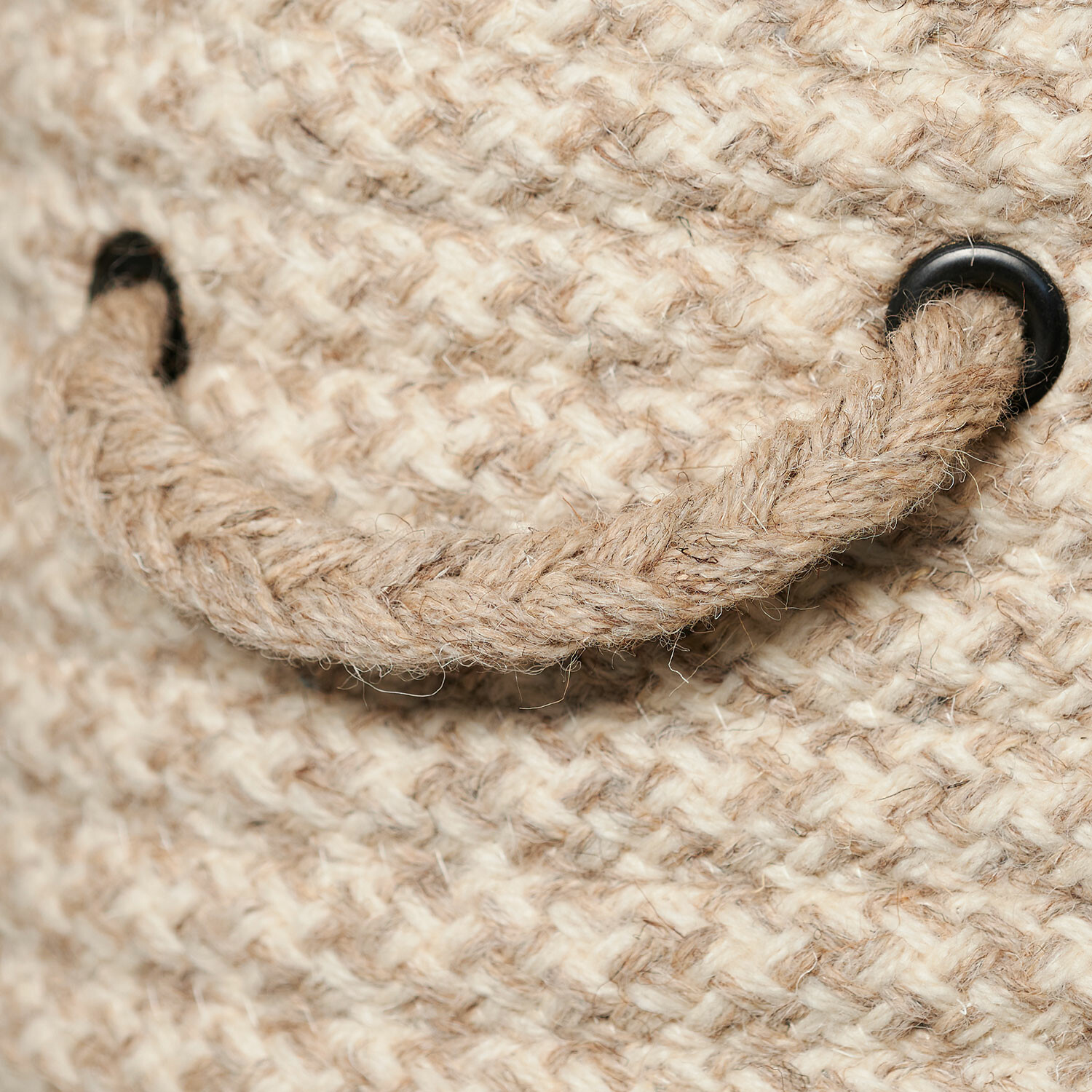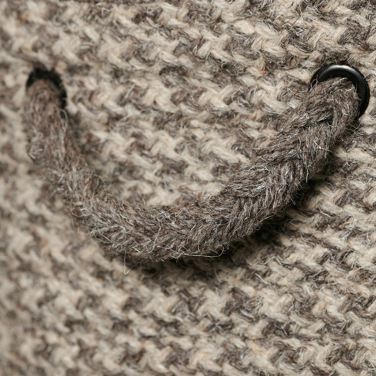 Natural Houndstooth Woven Hamper