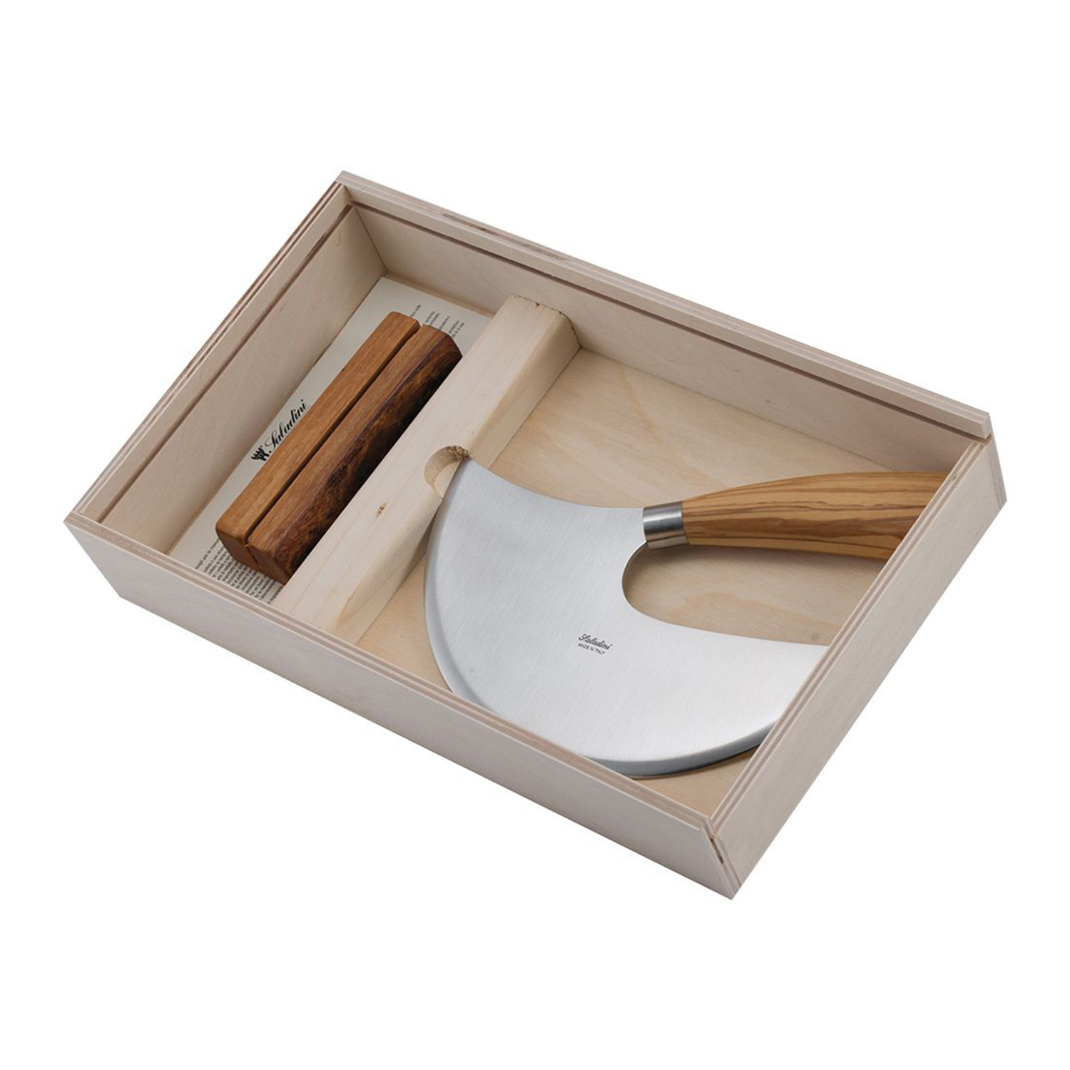 The Sellaio is inspired by an ancient knife that was used to cut the leather for the saddles with its unique, crescent-shaped blade. This knife can be used to cut hard food, such as chocolate.