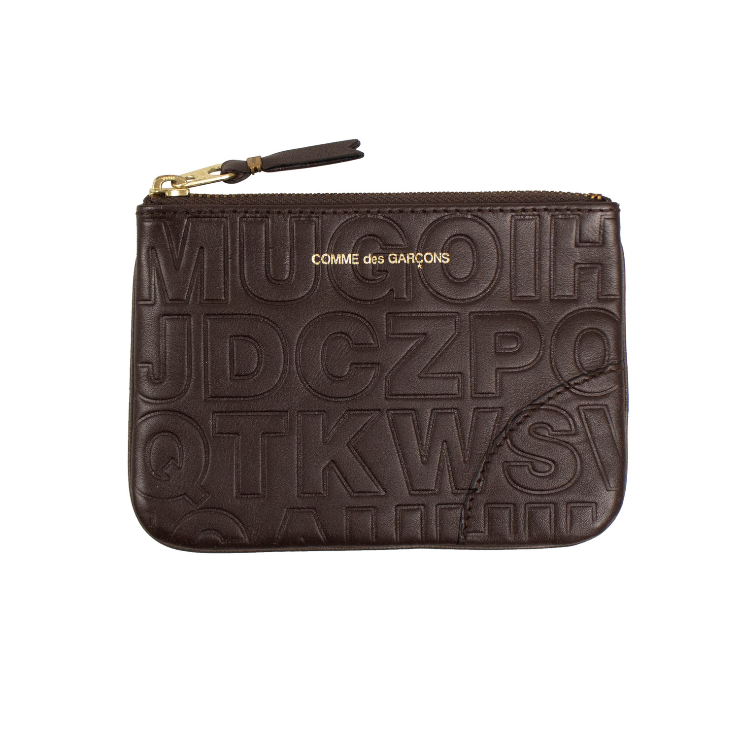 Leather Letter Embossed Wallet Pouch // Brown