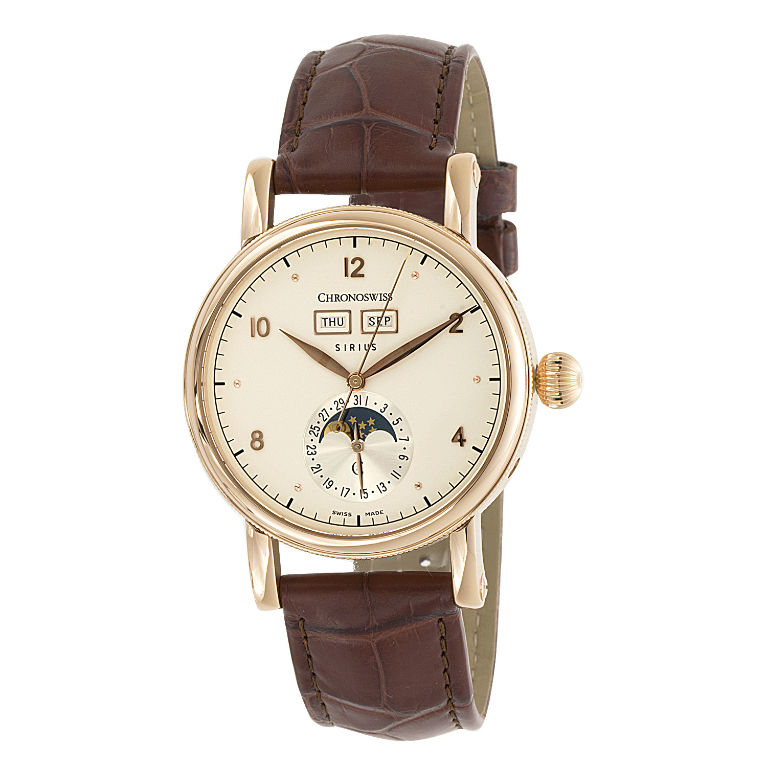 The love for even the smallest detail and the passion for technical precision is what makes Chronoswiss watches like the Sirius so unique. Visually, Chronoswiss watches are always recognizable by certain unmistakable design features, such as the characteristic onion-style crown. This watch is handcrafted with true craftsmanship, in pursuit of the preservation of ancient traditions.
