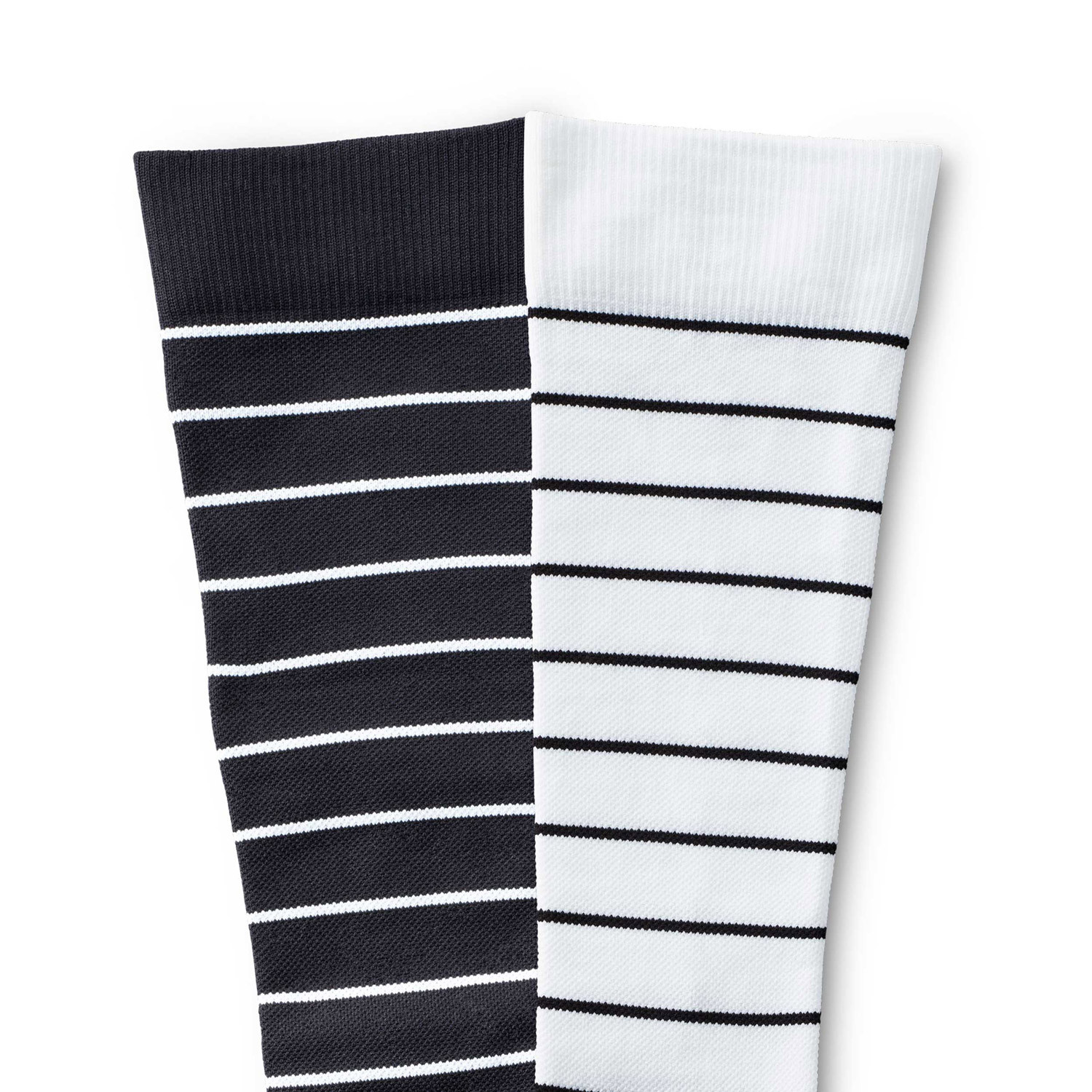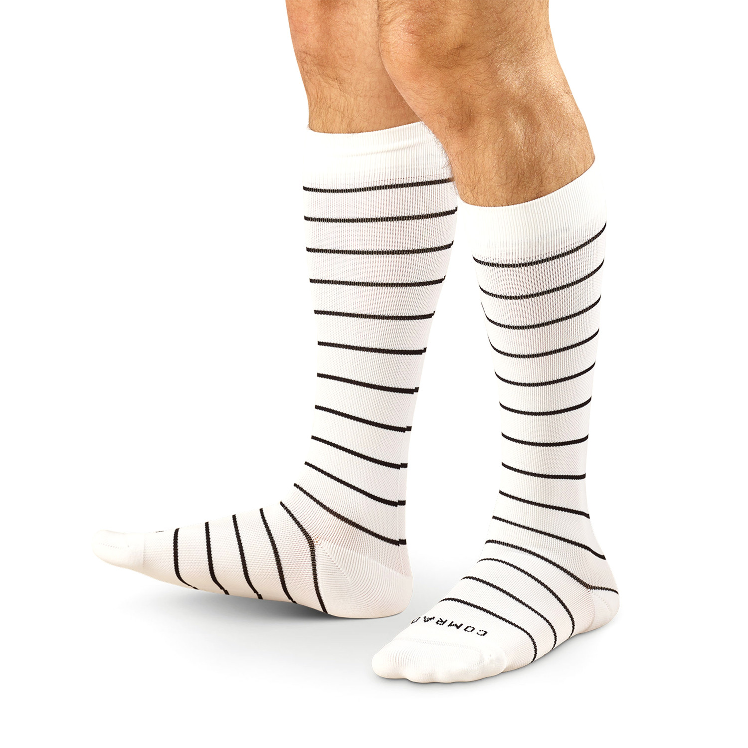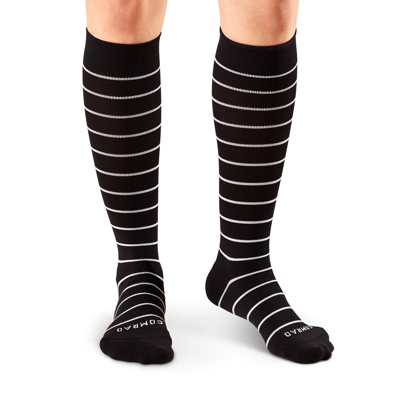 These are not your grandma’s compression socks. You probably have a mental image of who compression socks are for — but COMRAD is using compression technology to make support socks for everyone. If you’re physically active, stand, or sit all day for work, or travel frequently, you’d be surprised what compression socks can do for you. By utilizing graduated compression to keep blood circulating well throughout your day, these socks improve your leg health while preventing dangerous blood clots and unsightly spider veins. And best of all they’re stylish enough to be the perfect accessory or accent for your outfit.