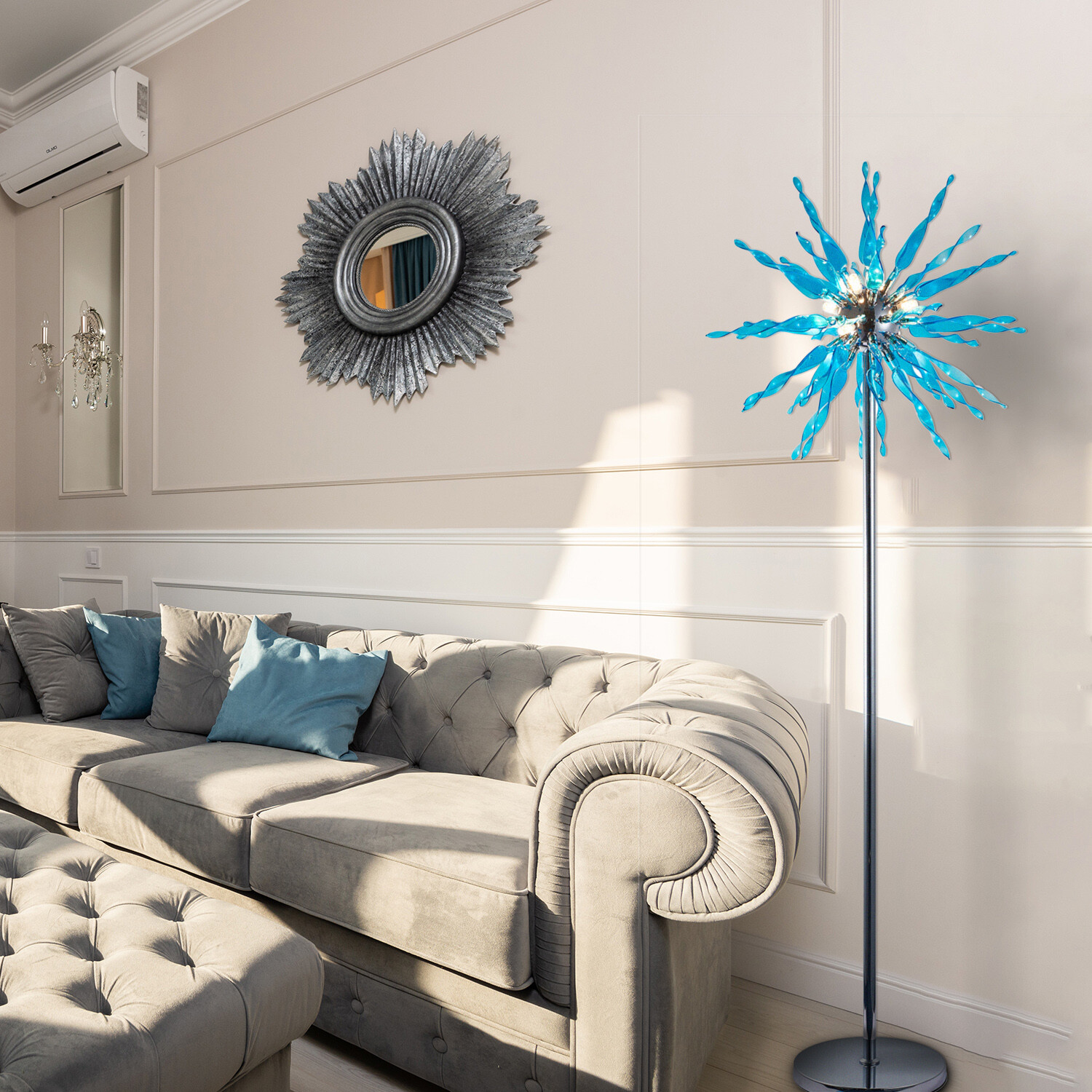This floor lamp is an artistically designed to be a true showpiece in your living room, bedroom, or office. The gorgeous, hand-blown glass spears cascade from a center orb which takes this look to another level.