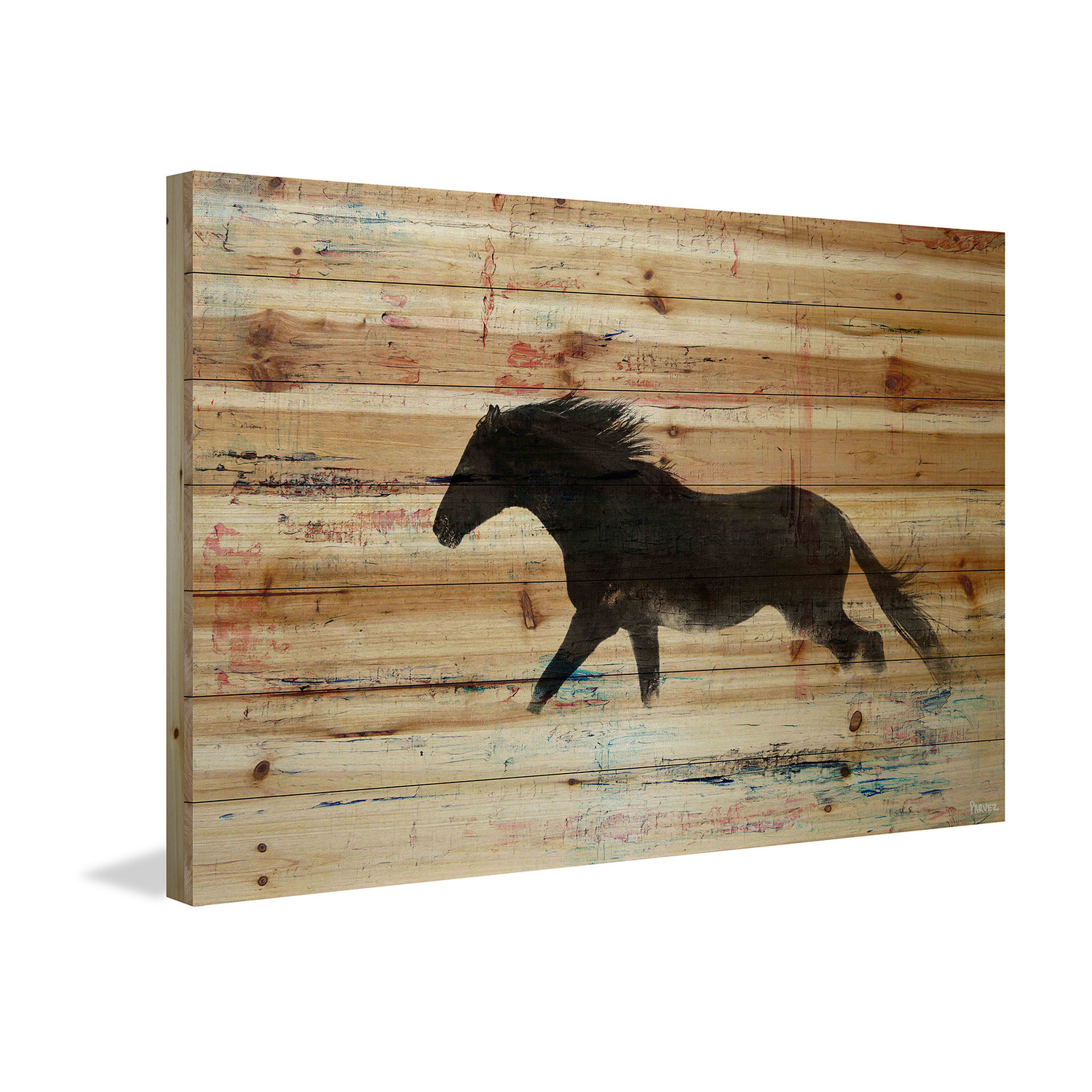 Trotting Black Horse Painting Print // Natural Pine Wood