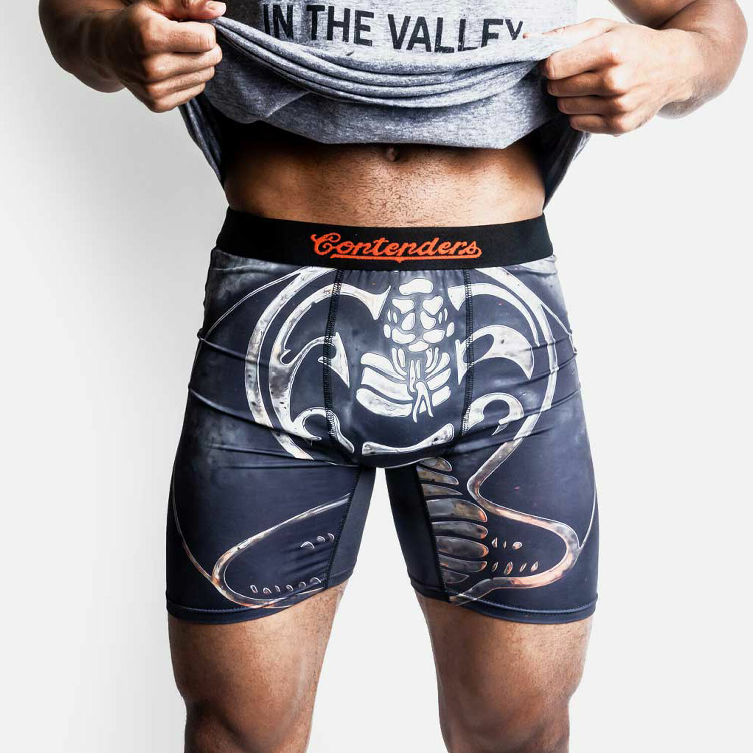 The Cobra Kai snake logo is iconic. In the Cobra Kai series, the logo is re-imagined as a ominous relic coming back to life on these Cobra Kai New School Briefs