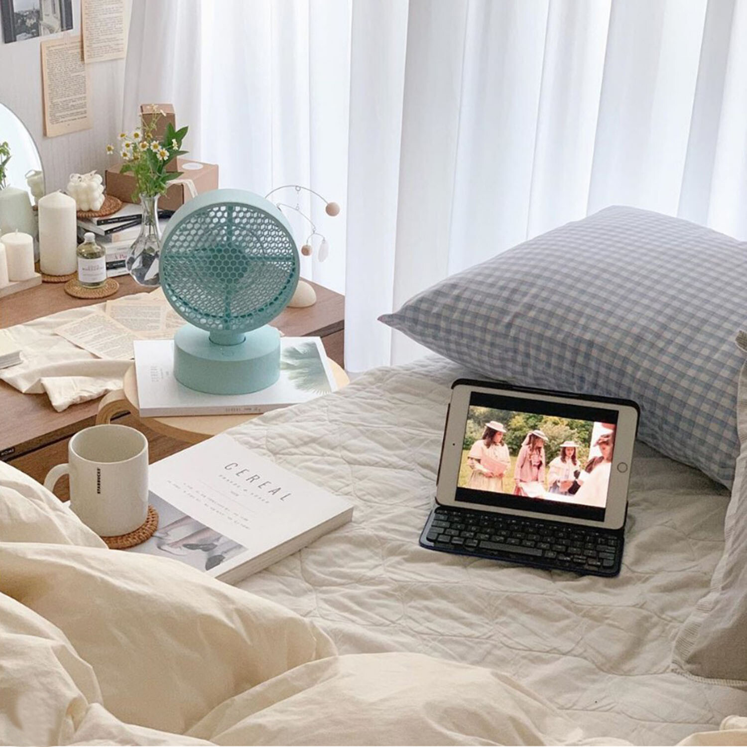 Honeycomb Faced Oscillating Desk Fan // Mint Green