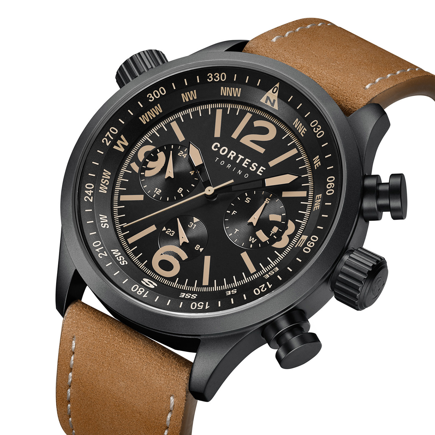 With a compass ring, day function, 24 hour function, and Seiko VX9J quartz movement, this Cortese Giramondo Multifunctiona offers the perfect fit for the many diverse moments in the life — it's got a utilitarian business look, but is sleek enough to outlast your suit and be worn well into the evening.