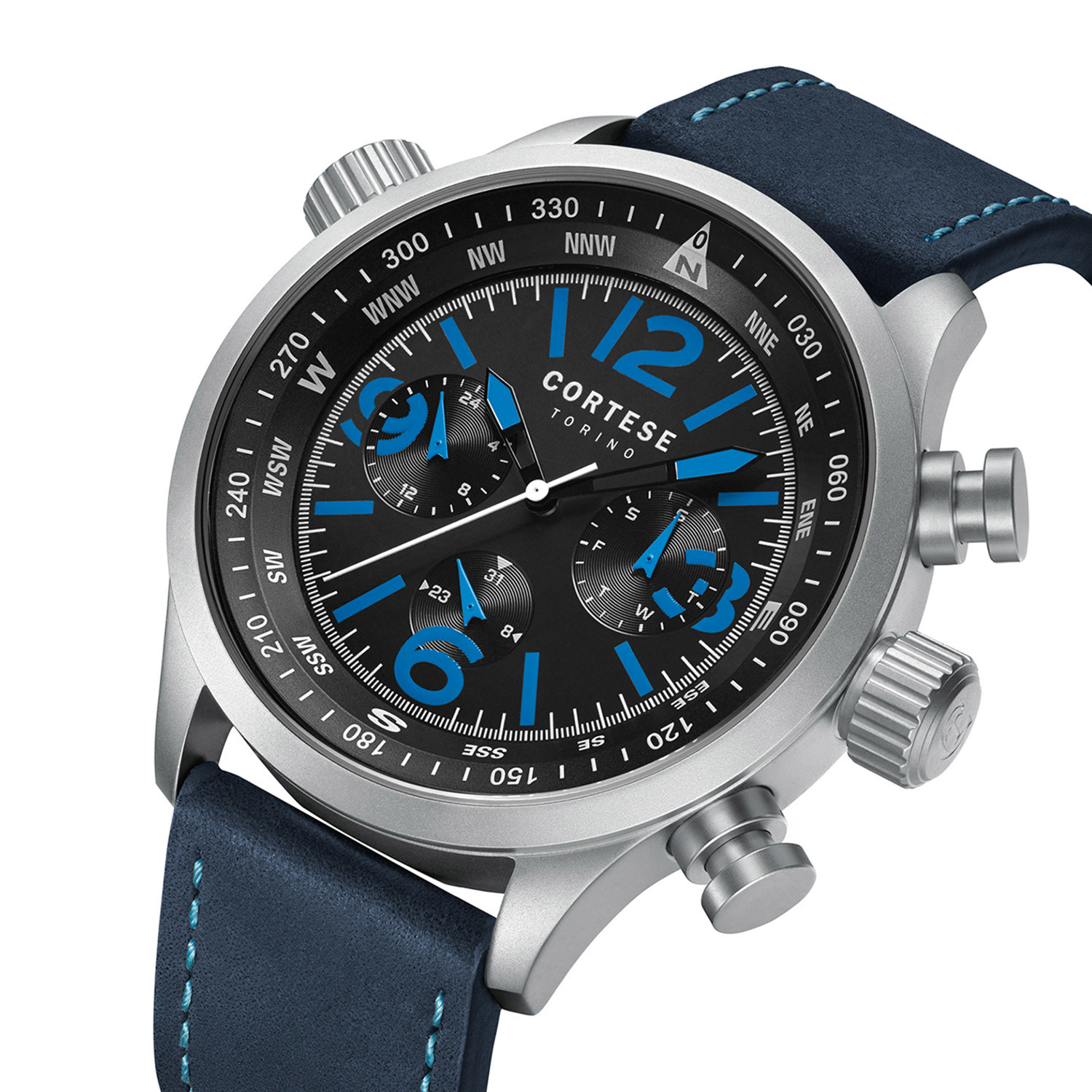 With a compass ring, day function, 24 hour function, and Seiko VX9J quartz movement, this Cortese Giramondo Multifunctiona offers the perfect fit for the many diverse moments in the life — it's got a utilitarian business look, but is sleek enough to outlast your suit and be worn well into the evening.