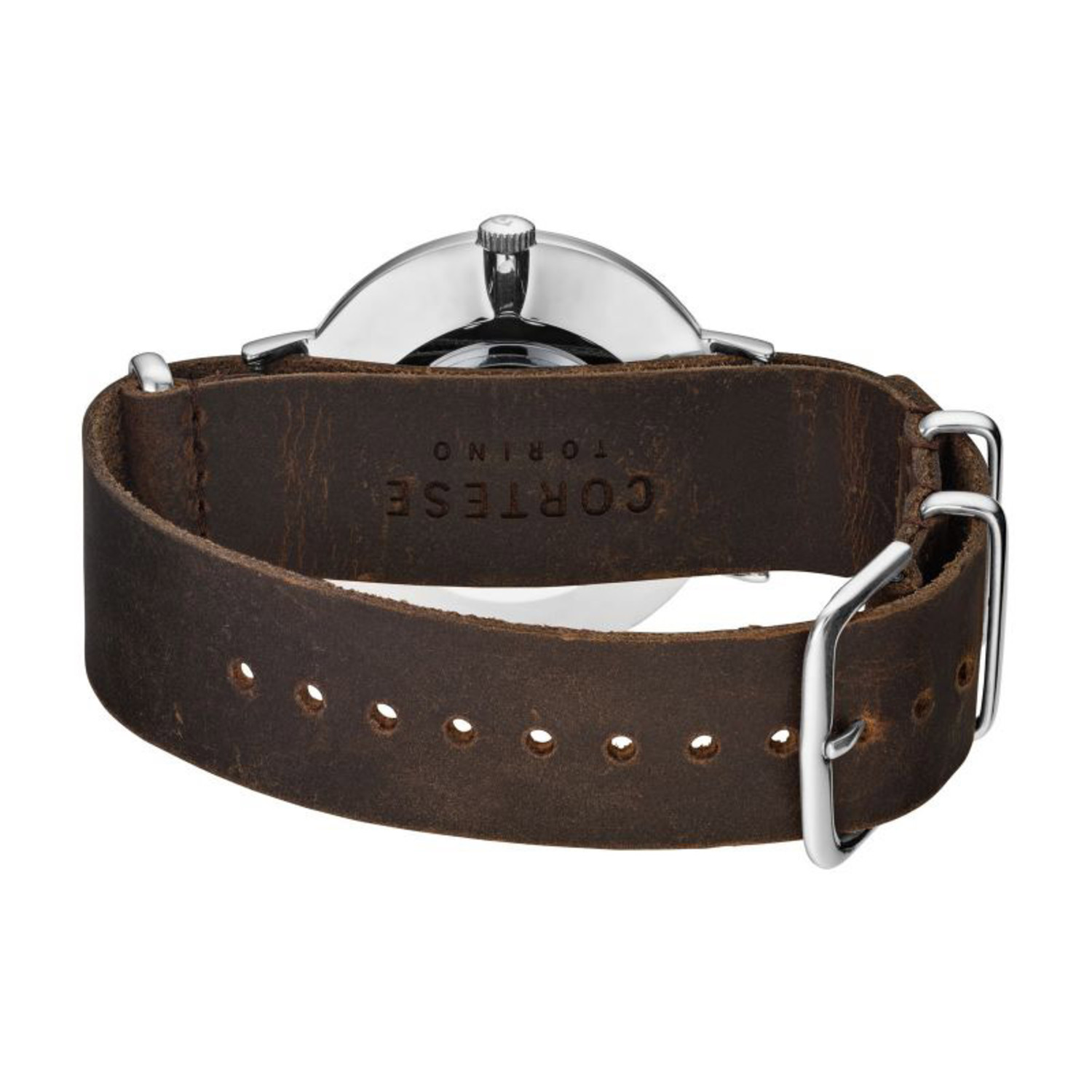 The Cortese Prologo features fine and elegant details that belong to a watch ten times the cost. The Cortese Prologo runs on a durable Miyota 2025 quartz movement in a unique brass case, carefully kept under a mineral crystal dial, atop a luxe leather bracelet.