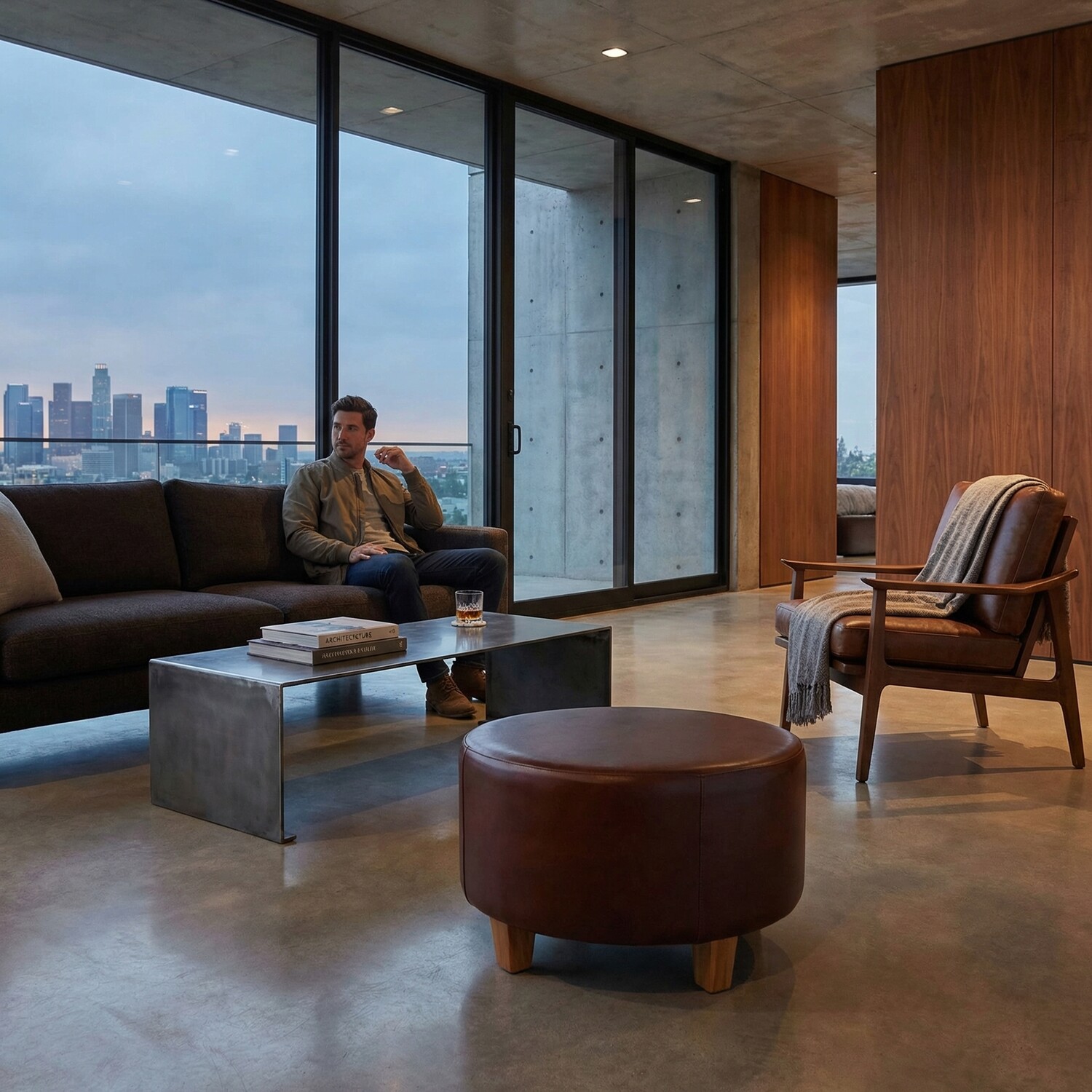 Bare Decor William Genuine 100% Leather Round Ottoman // Brown