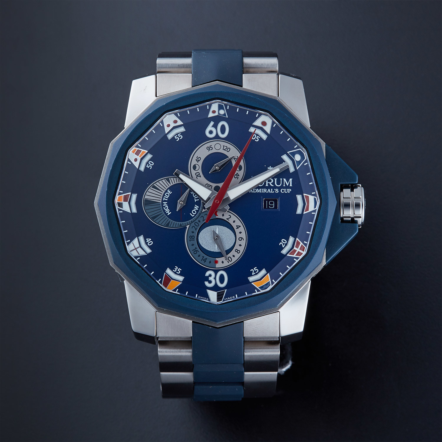 The Admiral’s Cup watch by Corum is an impressive timepiece by all accounts. With a host of nautical capabilities, this is the watch you want on your wrist when venturing out upon the water. This Admiral's Cup watch houses a Swiss mechanical automatic movement. The distinctive and handsome case contains all the elements that you long for in your luxury watches.