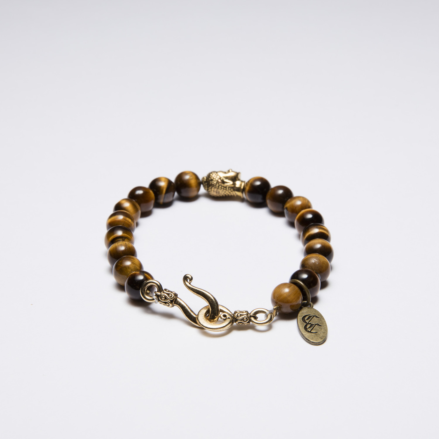 A highly characteristic bracelet made with the highest quality stone and detailed with a unique Buddha head and hook clasp, the 8mm Tigers Eye Buddha with Gold Buddha Head is the perfect combination of gorgeous stone and serene accessorization.
