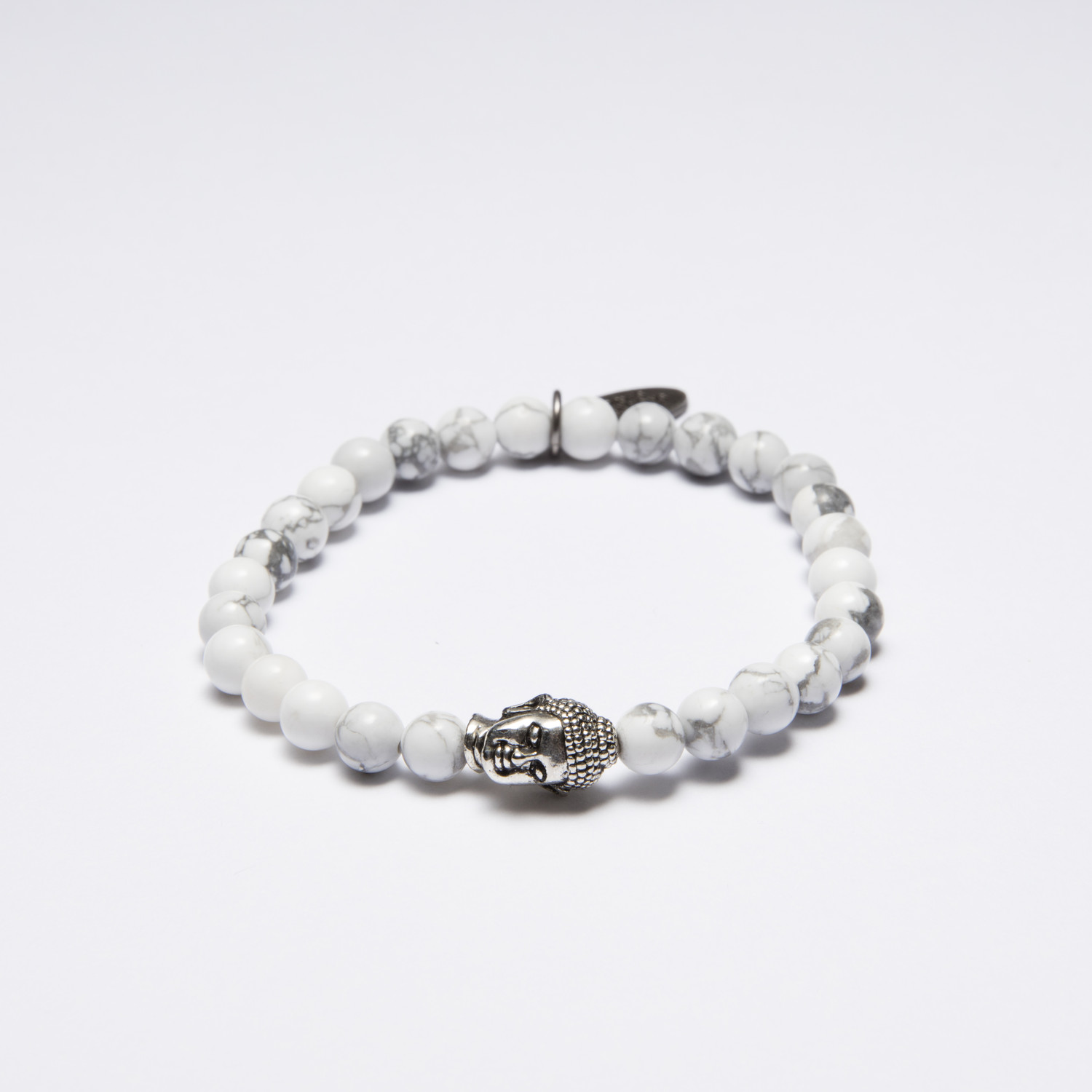 The 6mm White Howlite Buddha Bracelet is a simple and handsome way to boost your basic looks. With a white tee, it will blend right in, yet still give the eye something extra to enjoy.