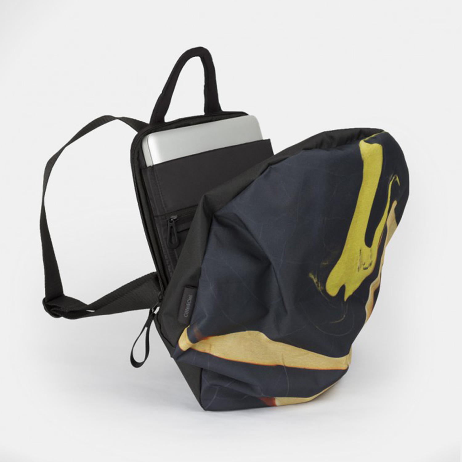 Moselle Rucksack in Whorl Print is fashioned to resemble an alluring raindrop inspired spherical silhouette, created in collaboration with young French artist Yassin Lahmar. There is no shortage of utility to make the most of your day as the Moselle can morph between a rucksack and a tote bag for on the spot versatility. It also features an integrated padded laptop compartment for 13” devices and an additional inner pocket. Detachable key ring and external pocket allow easy access to your belongings and smart phone.