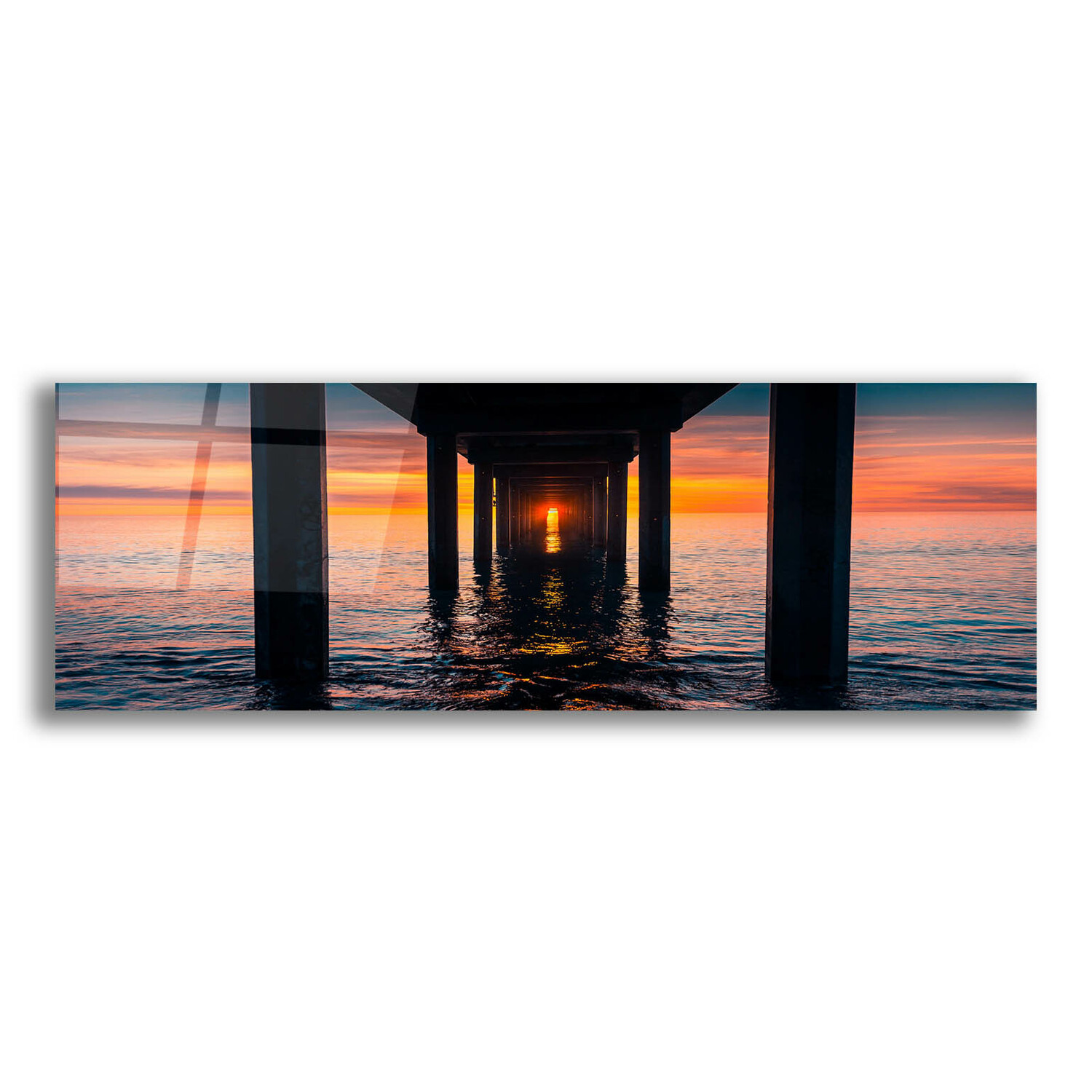 Red sky in the morn, sailors take warn. Red sky at night, sailors delight. Is there danger on the horizon, or is there a promise of a quiet night with peaceful waters? Follow the beacon at the end of the pier and see where it leads you, never know what you'll find. Vivid colors on a large 60" x 20" acrylic surface, this wall art is perfect for your home or office. The pre-mounted frame on the back makes it ready to be hung right out of the box. The strong acrylic gives it an unparalleled gorgeous glossy finish.