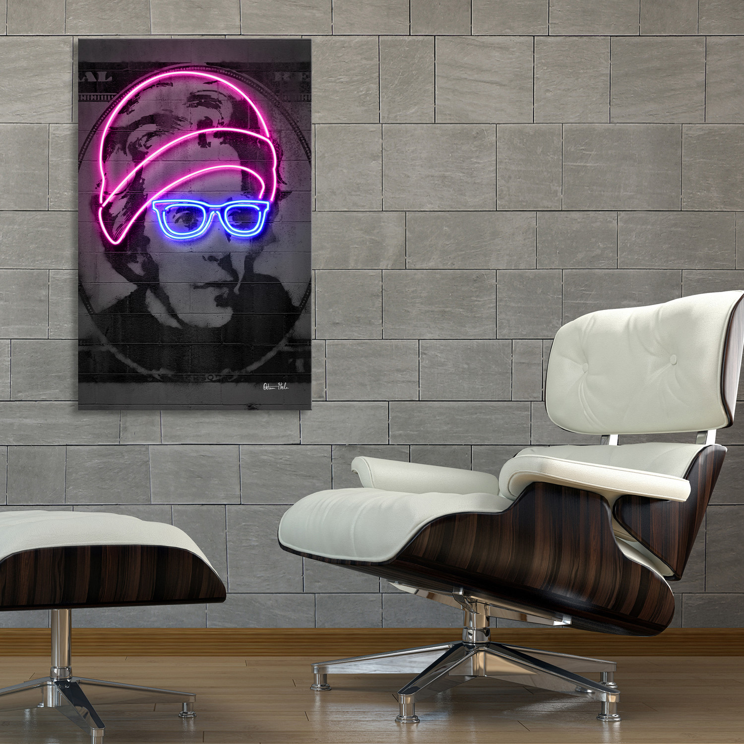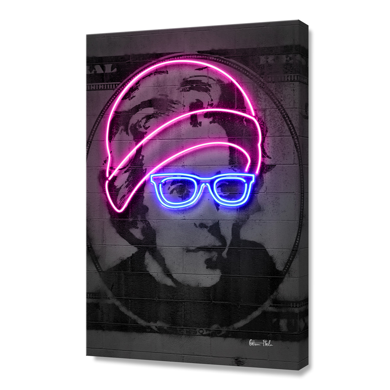 Dazzling, eccentric, and just a little tongue-and-cheek, this print is a piece from the Romanian artist Octavian Mielu's homage to historical figures and classic pop culture. It is done in his incredibly distinctive style, with sharp lines and hard contrast that looks exactly like real neon.