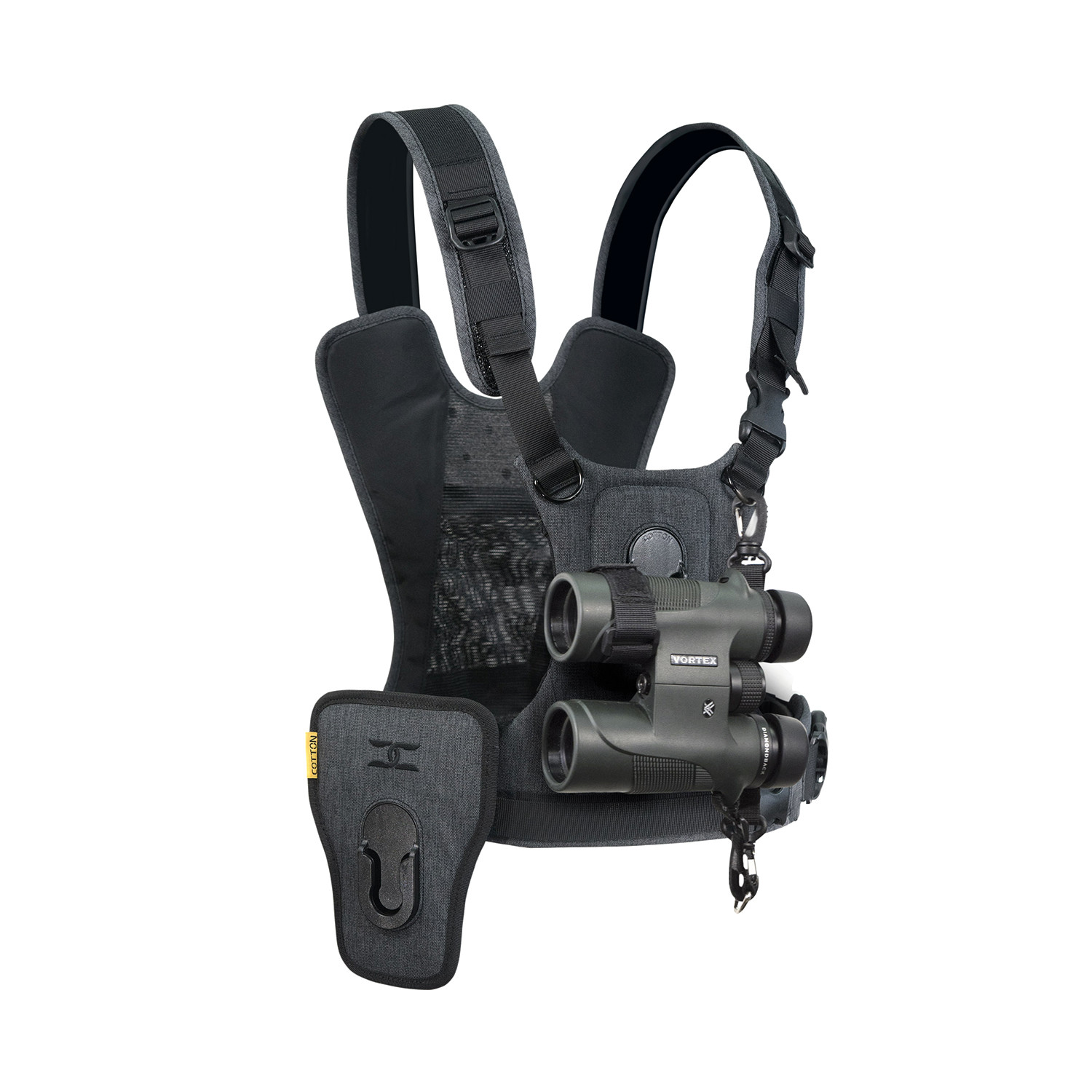 The CCS G3 GREY Harness System for binoculars and one camera is perfect for outdoor photographers and birders. This is the only system on the planet that allows you to comfortably carry binoculars and one camera.