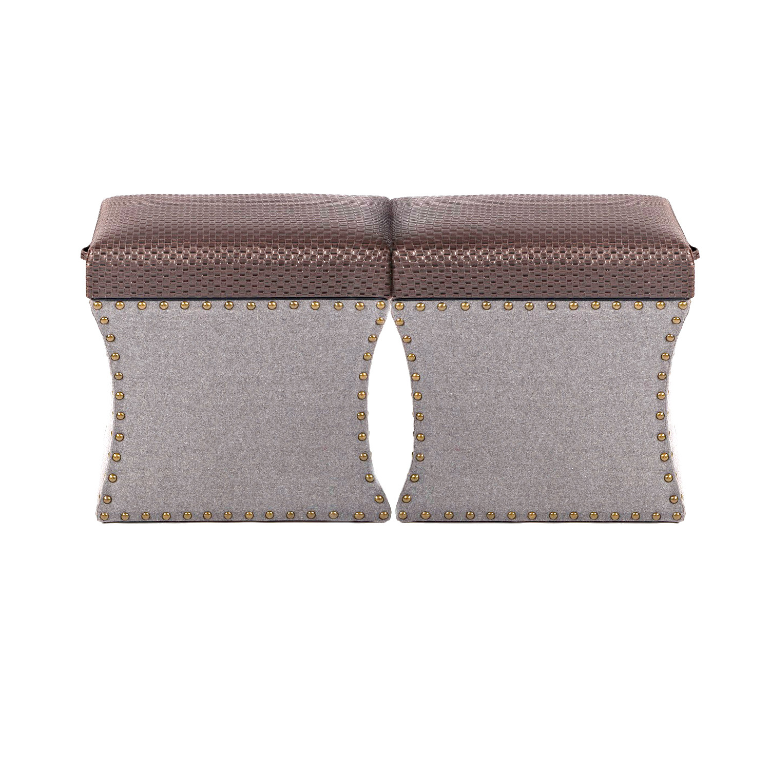 The Chandler Storage Ottoman is the ultimate combination of form and function, combining two different fabrics to create high-end design. The bronze nail heads add a subtle and timeless sophistication to the piece. Perfect as a stool, ottoman, end table, foot rest, coffee table and great in pairs, this is a Label 23 favorite for a reason. Take advantage of the comfortable seat, internal storage and the signature solid wood Label 23 pull out shelf.
