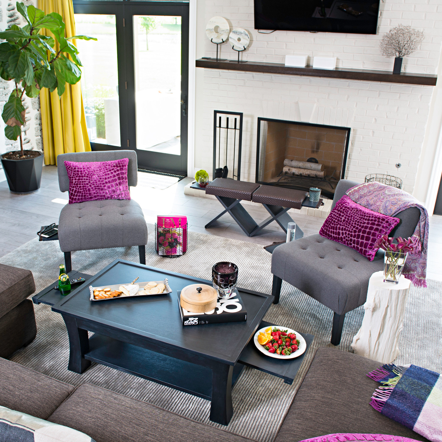 The Dolton Coffee Table is the perfect asset to any living space. With an unbelievable mix of materials and functions, this table features two solid wood signature Label 23 pull out shelves to house food, drink or an iPad. The cushion sits atop the table for a comfy place to rest your feet or take a seat, but is also removable, revealing the table top for a harder, serving surface.