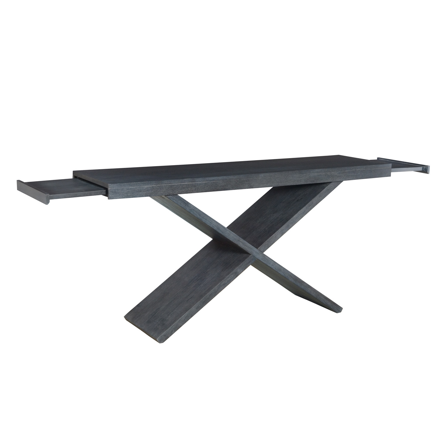The Mr. X Console Table is the perfect piece for providing extra surface area for any room of the house. With the clean, modern X formation of the solid wood base, this is a Label 23 signature piece, with the convenient pullout shelves that make entertaining a breeze. The X formation can even be used for wine storage. Encompassing all things form and function, this must-have table is featured in a sophisticated solid wood distressed slate finish.