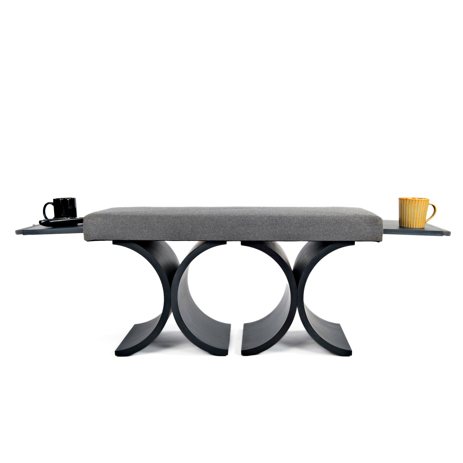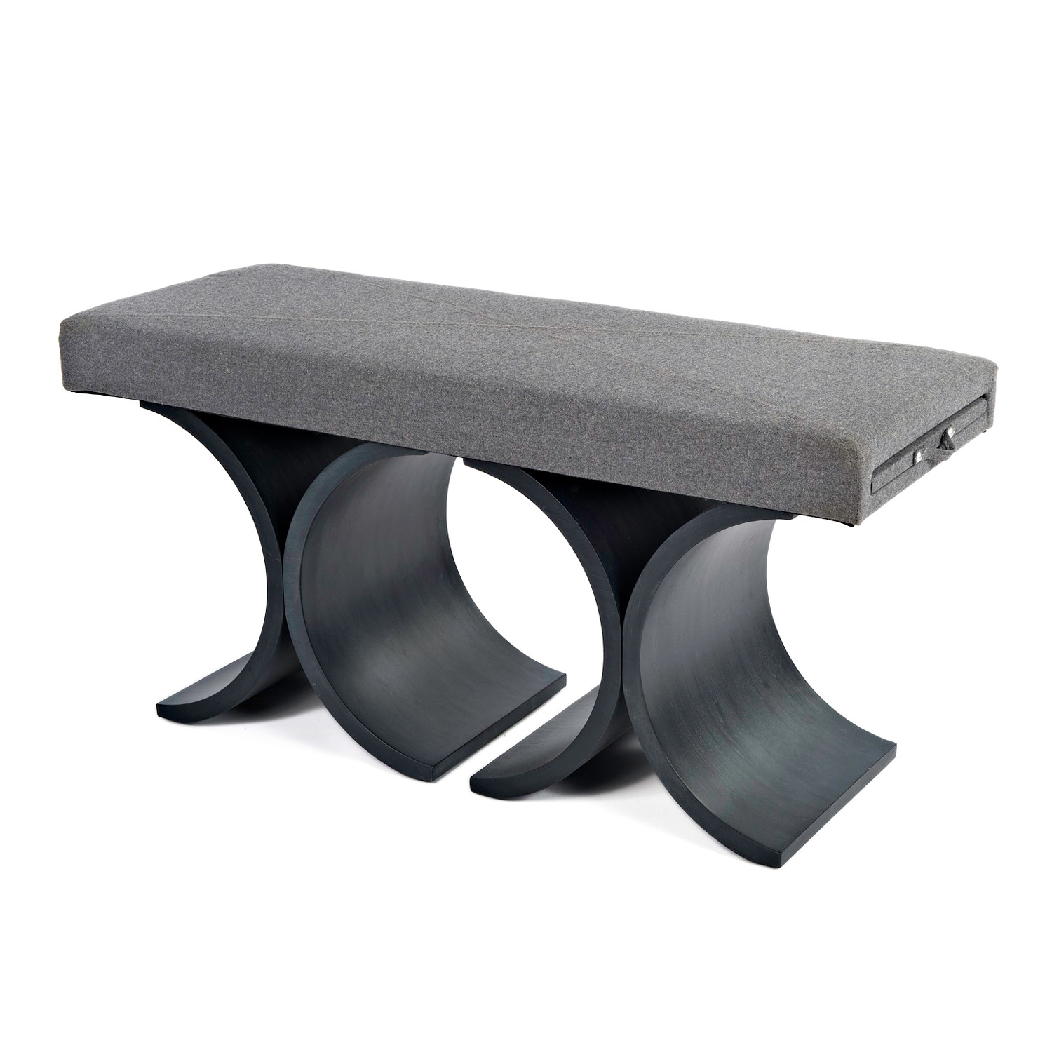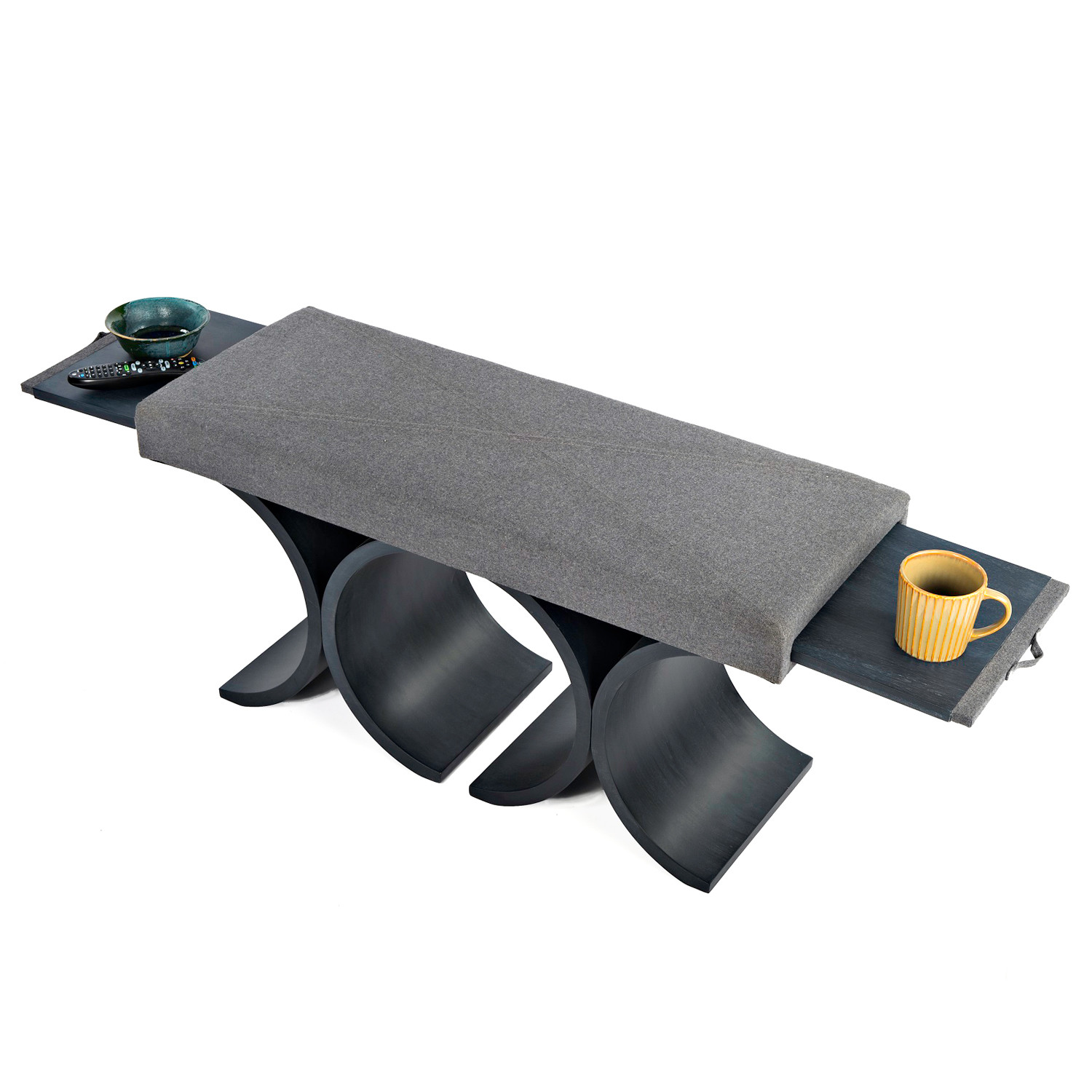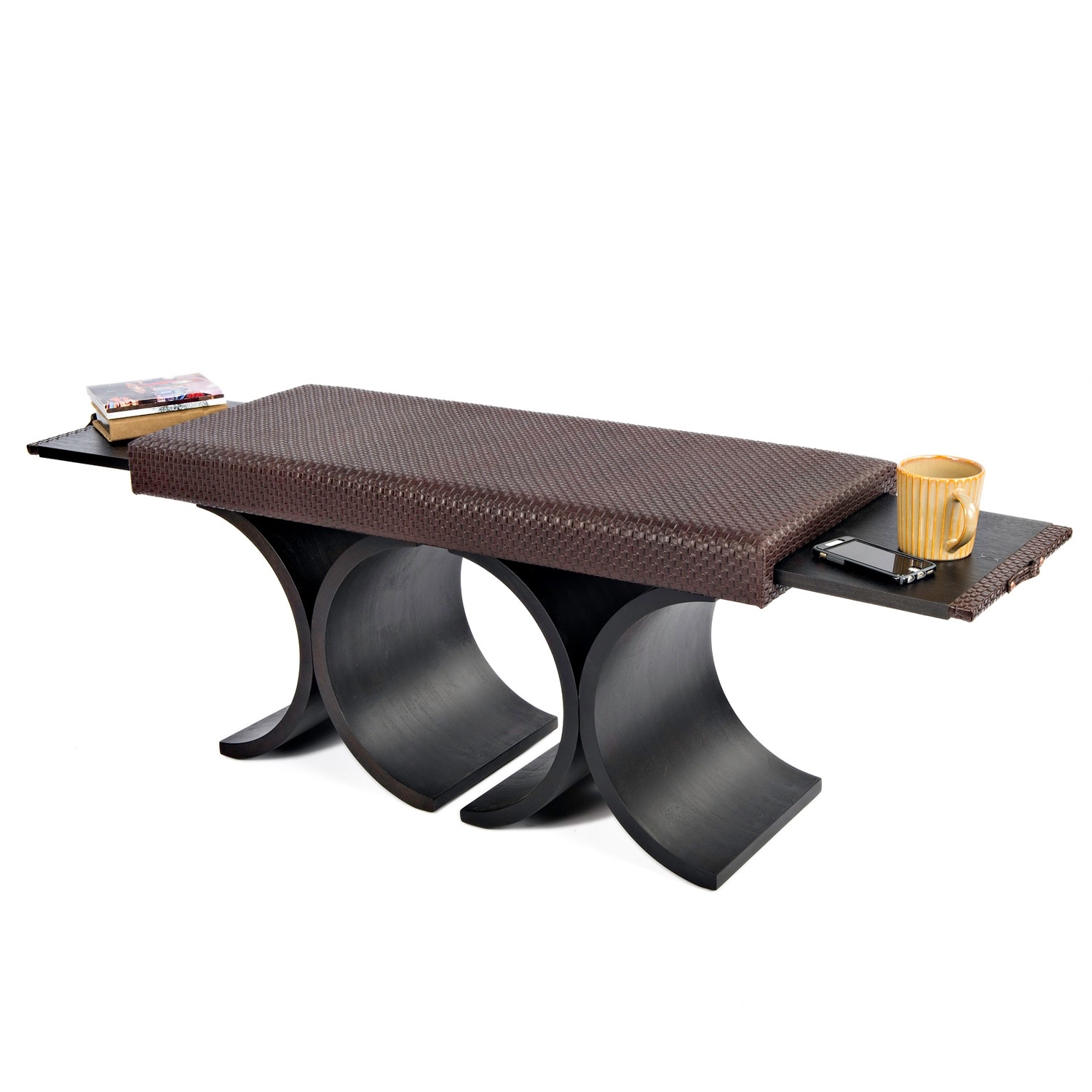 The Grace Bench with Pull Out Shelves is sleek and sophisticated. Embodying the ultimate in style and practicality, the inverted arched pedestal base crafted in solid wood is chic and stylized. This bench can be utilized as an ottoman, foot rest, bench, or coffee table.