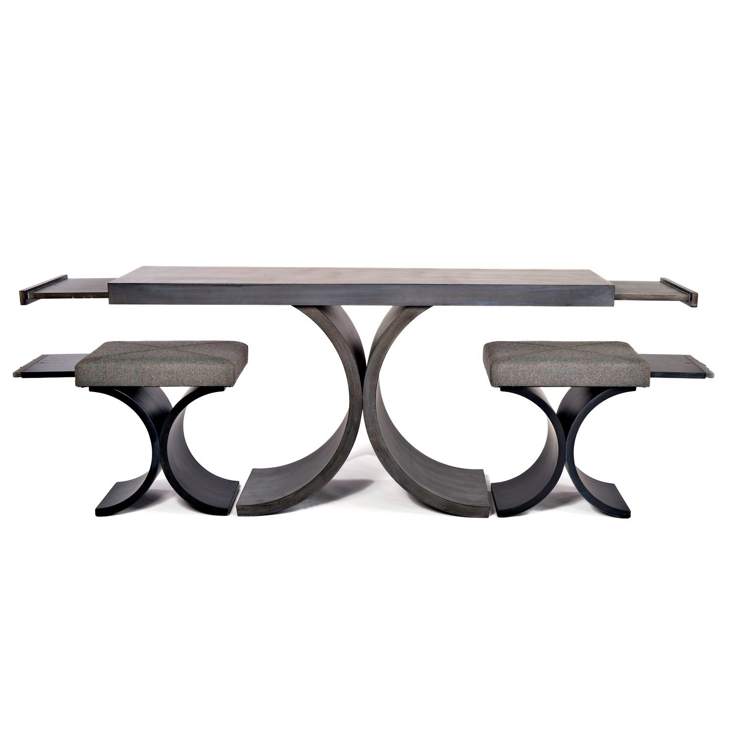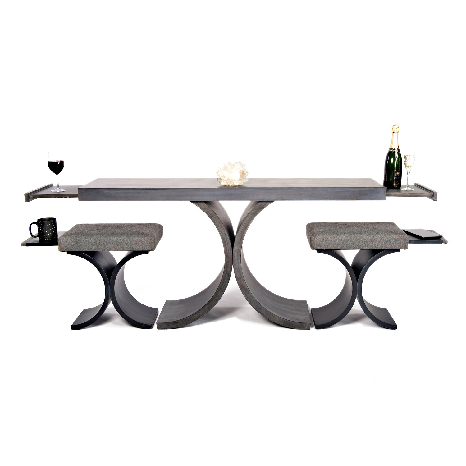 The Grace Console Table with Pull Out shelves is the perfect piece for providing extra surface area for any room of the house. Sleek and sophisticated, it's the ultimate in style and practicality. The inverted arched pedestal base crafted in solid wood is chic and stylized, this is a Label 23 signature piece, with the convenient pull out shelves that make entertaining a breeze. This must-have table is featured in a sophisticated solid wood dark gray finish.