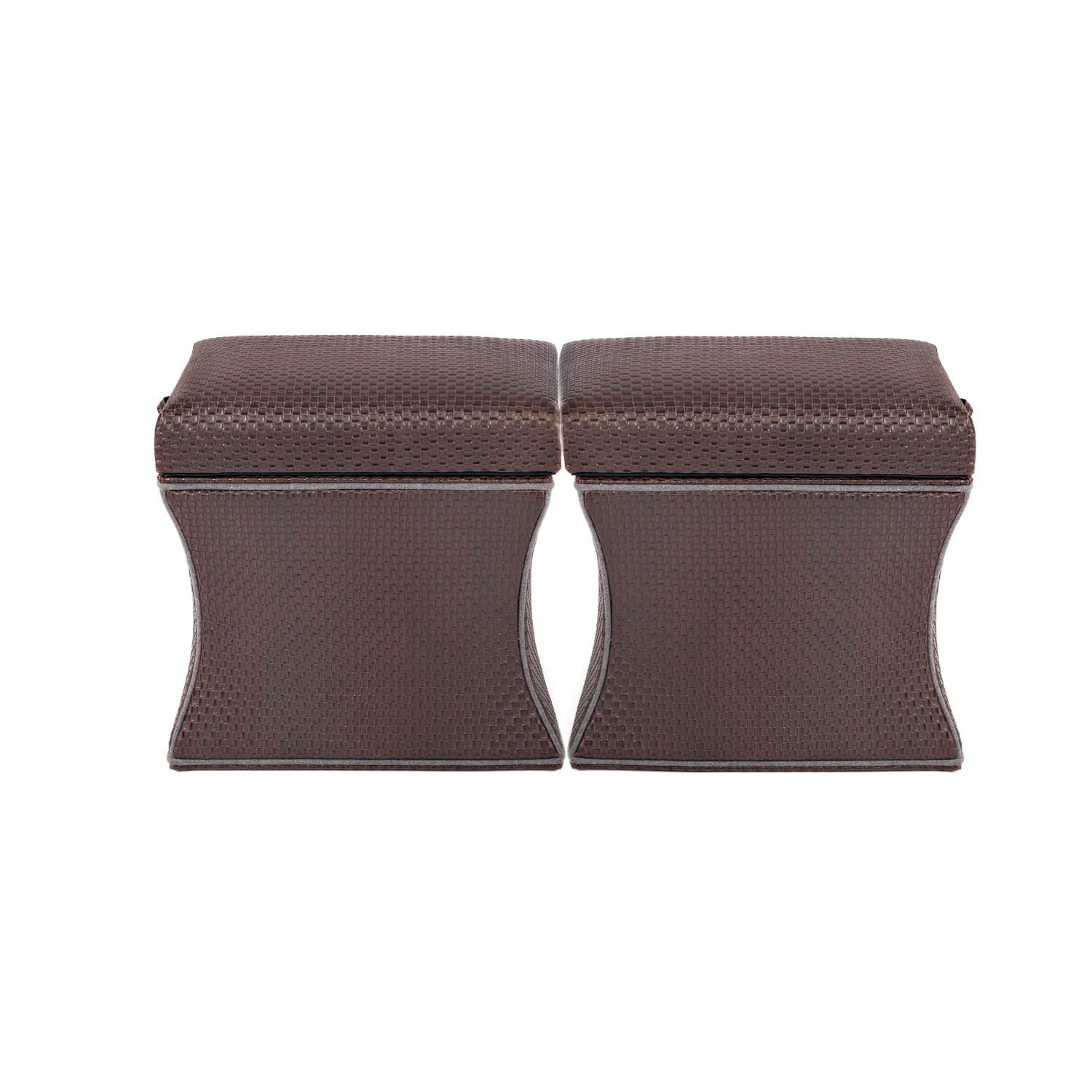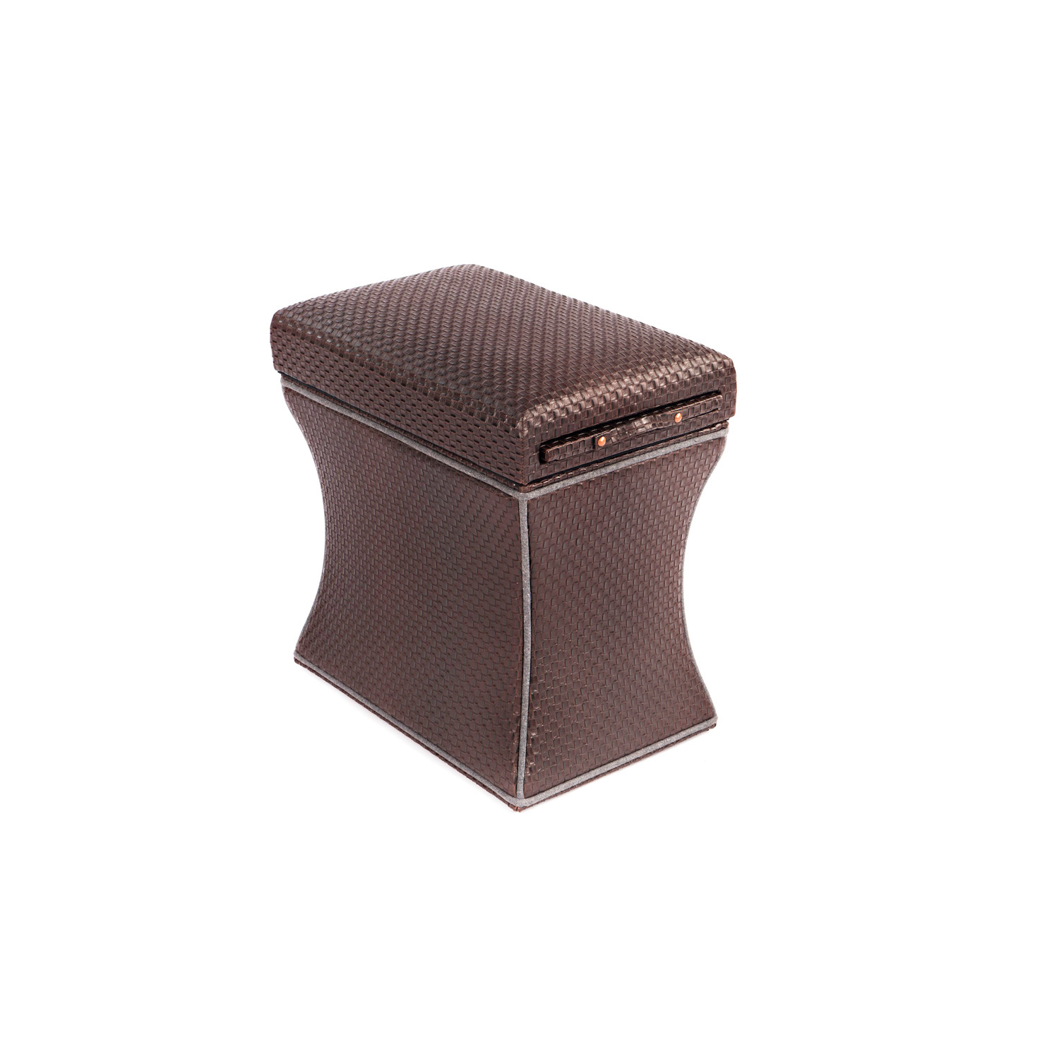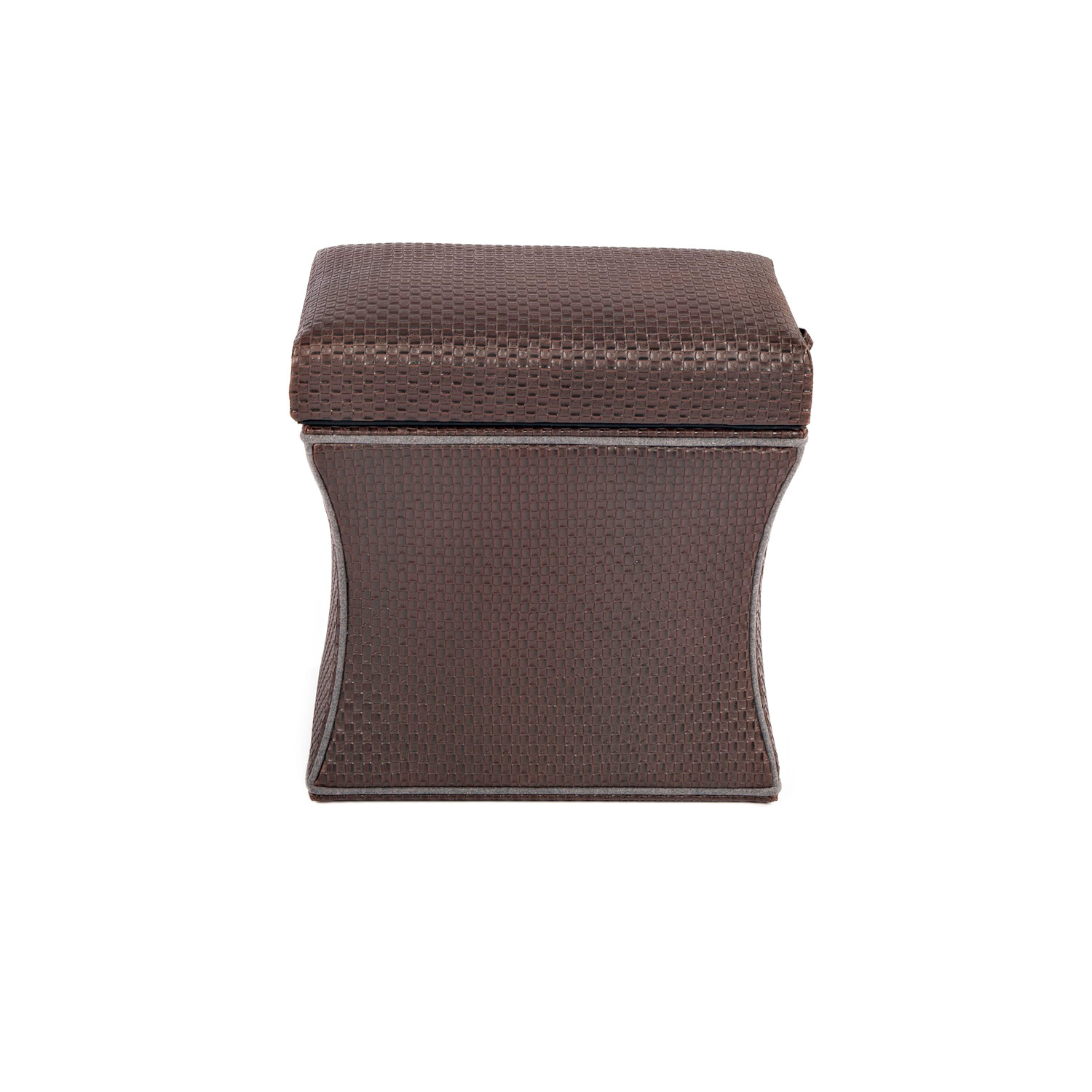 The Morgan Storage Ottoman featured in a champagne faux leather with gray piping is as stunning as it is practical. The wide-ranging functionality allows the piece to be utilized as a stool, ottoman, end table, foot rest, coffee table and great in pairs. The streamlined design can be dressed up or dressed down. Take advantage of the signature Label 23 pull out shelf finished in distressed dark gray wood, with storage in the base.