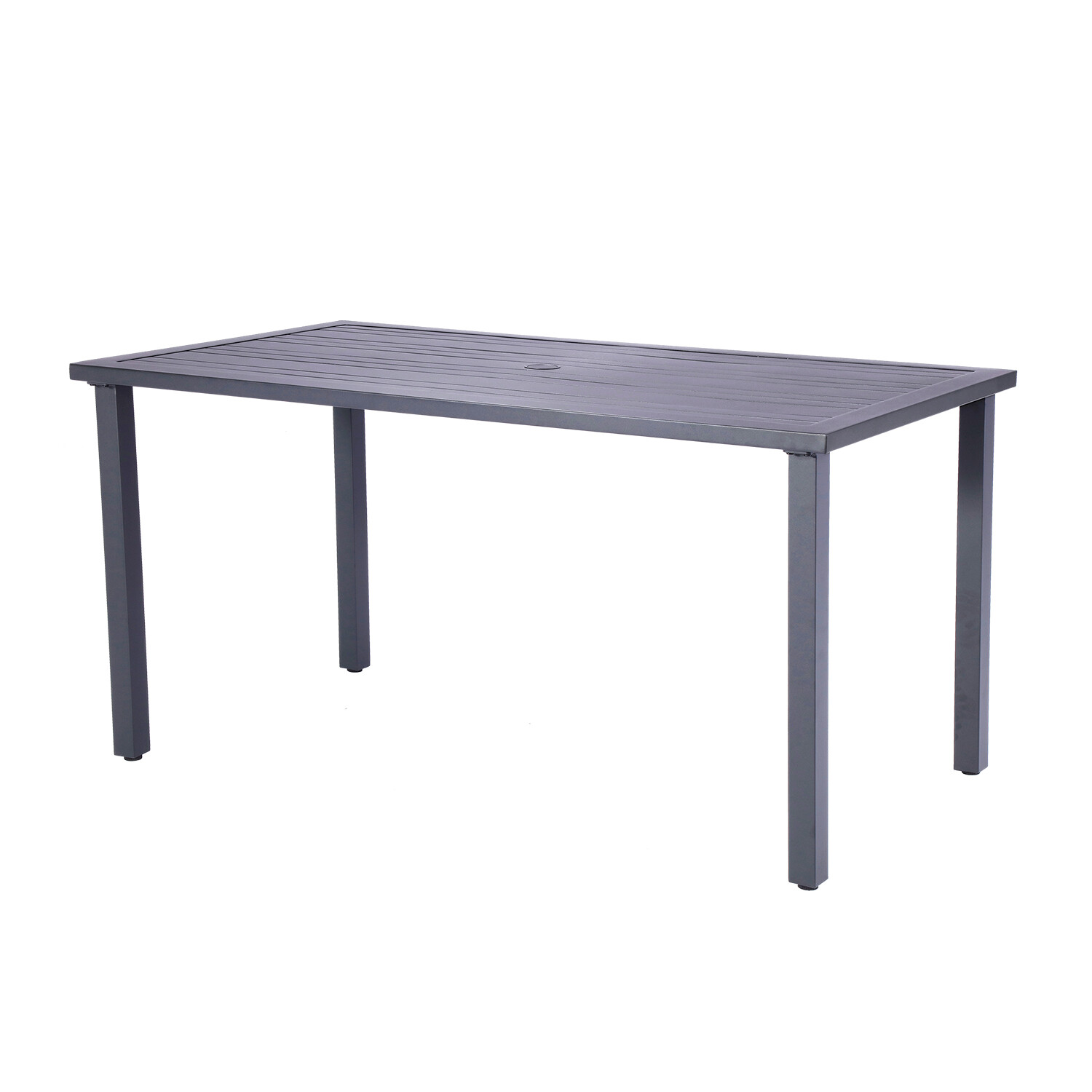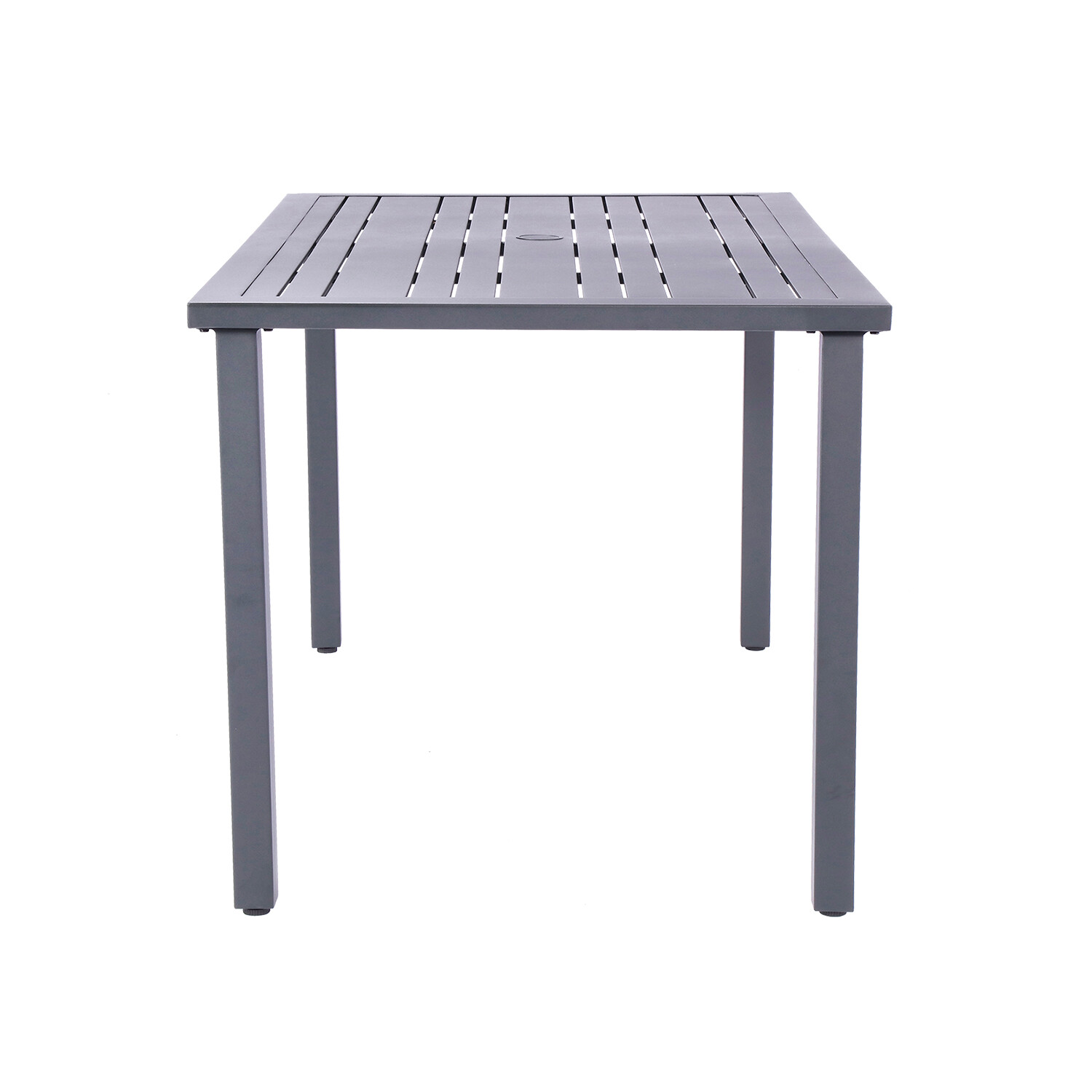 Whether you use it indoor or out, the Nusa Round Slat Dining Table effortlessly layers your sunroom or anchors your dining space with transitional appeal. Crafted of weather-resistant e-coating aluminum, four metal-pipe constructed legs offer reliable stability with the added benefit of being rust and scratch-resistant. The umbrella hole in the center of the table allows you to further customize your lounge space for ultimate comfort.